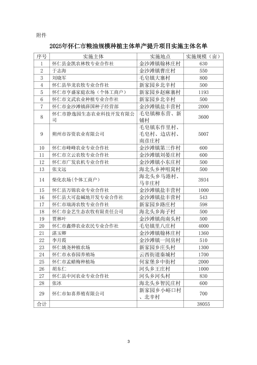 关于2025年怀仁市粮油规模种植主体单产提升项目实施主体的公示