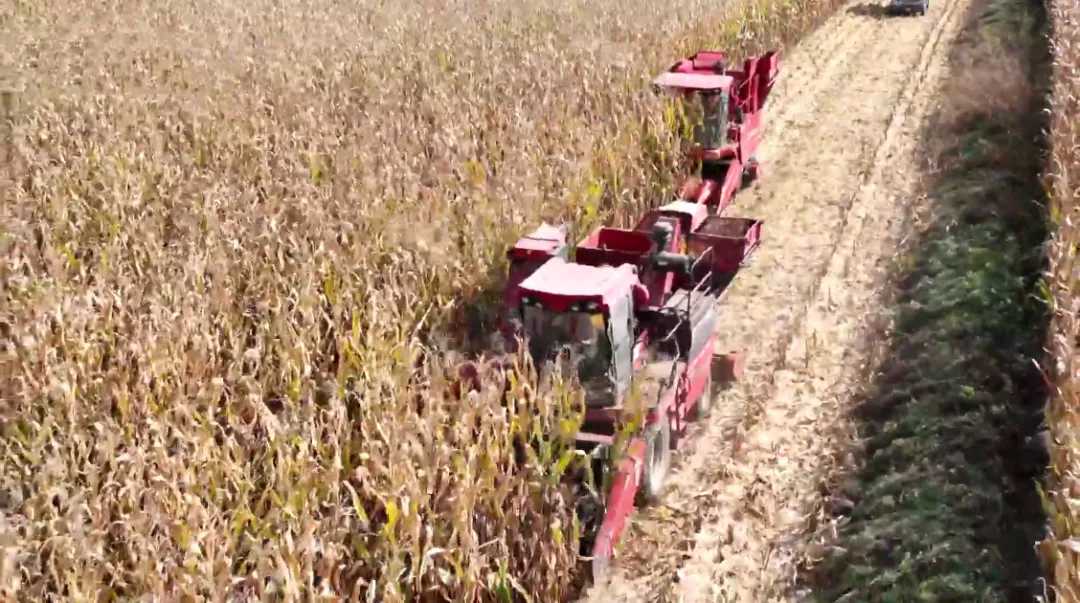 在怀仁市新家园乡的赵麻寨村,现在,这里的种植户正抢抓当前的晴好天气,集中调集大型机械进行玉米抢收,确保秋粮能够颗粒归仓。