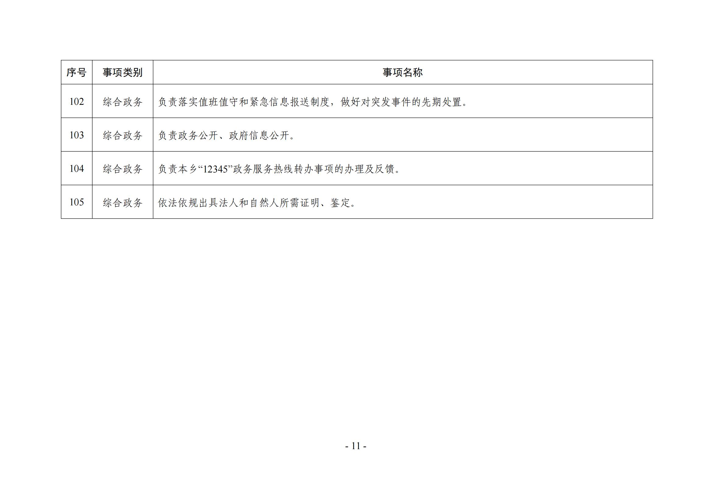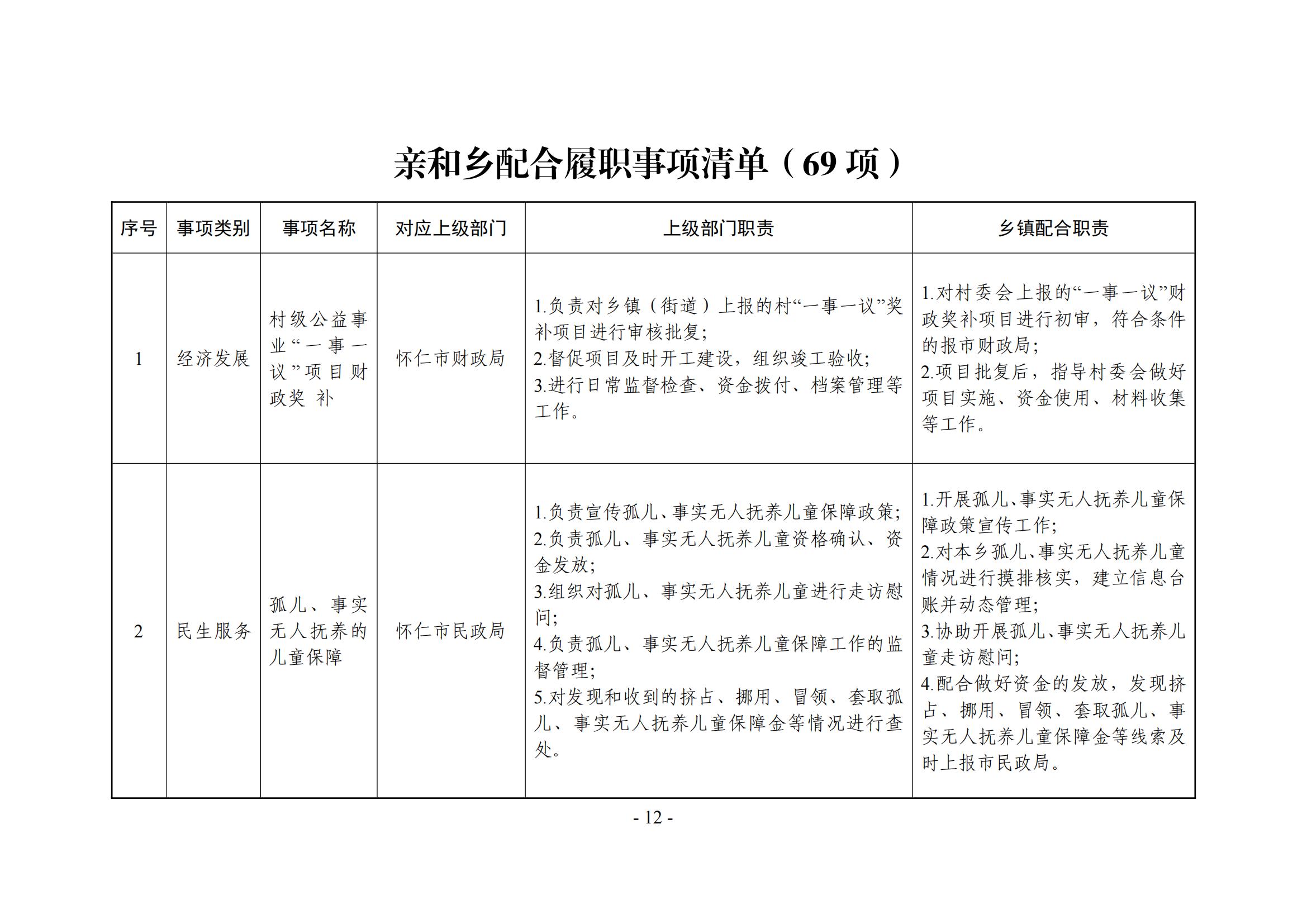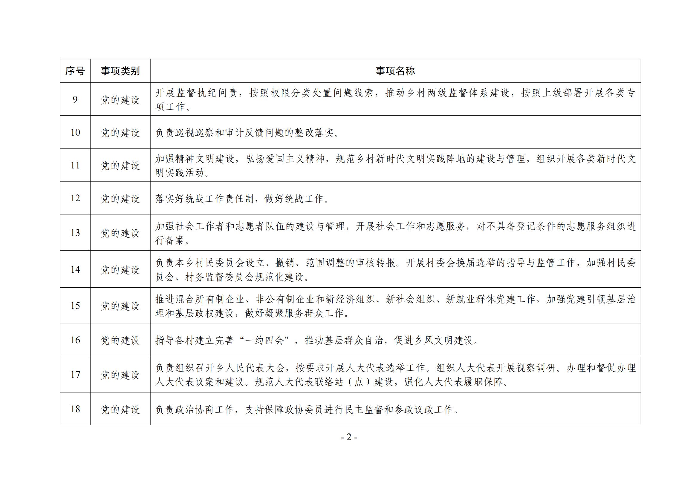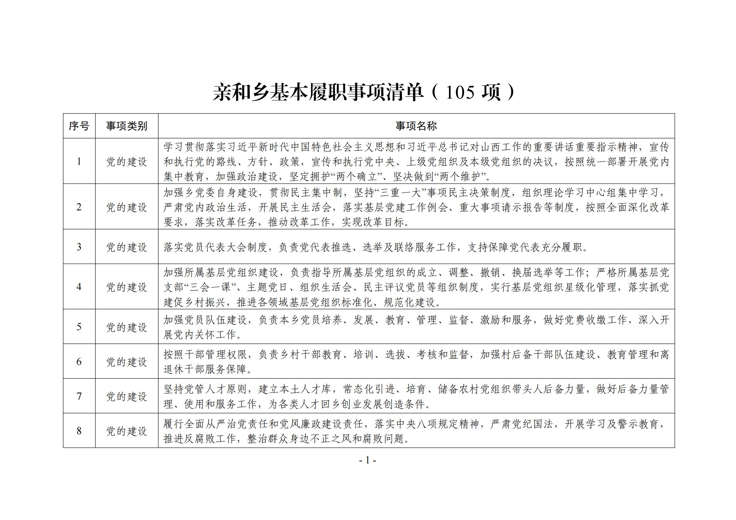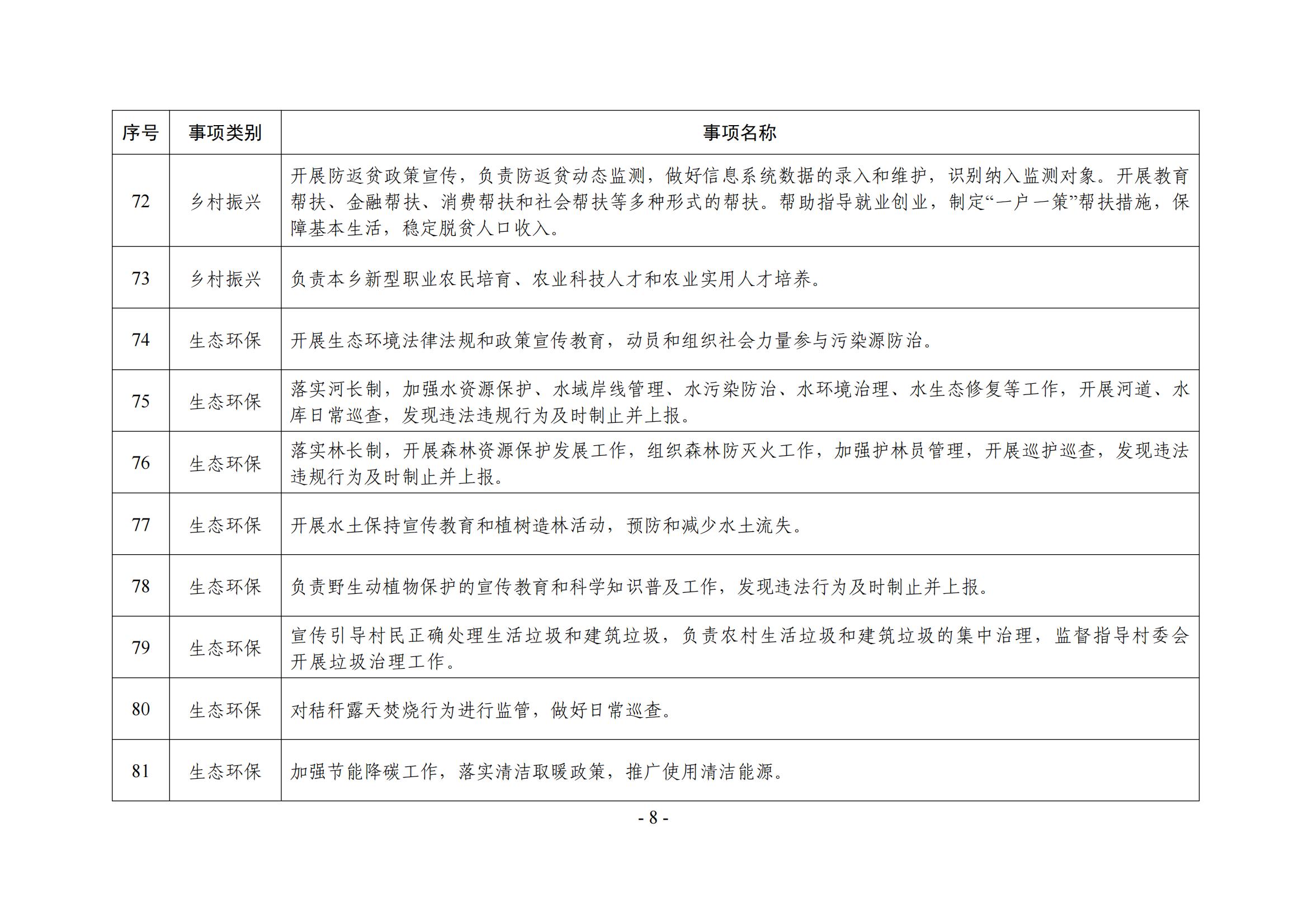 亲和乡履职事项清单