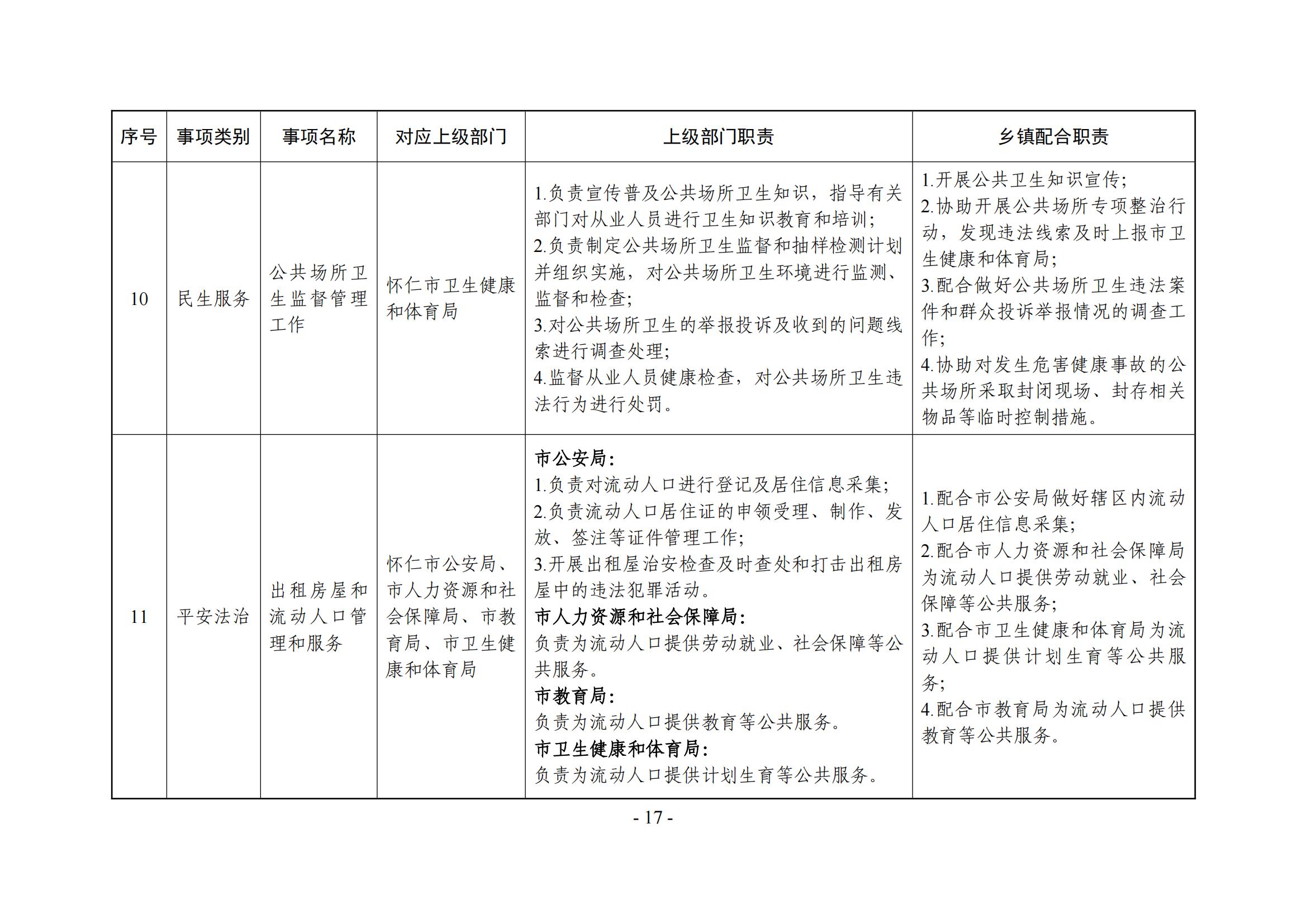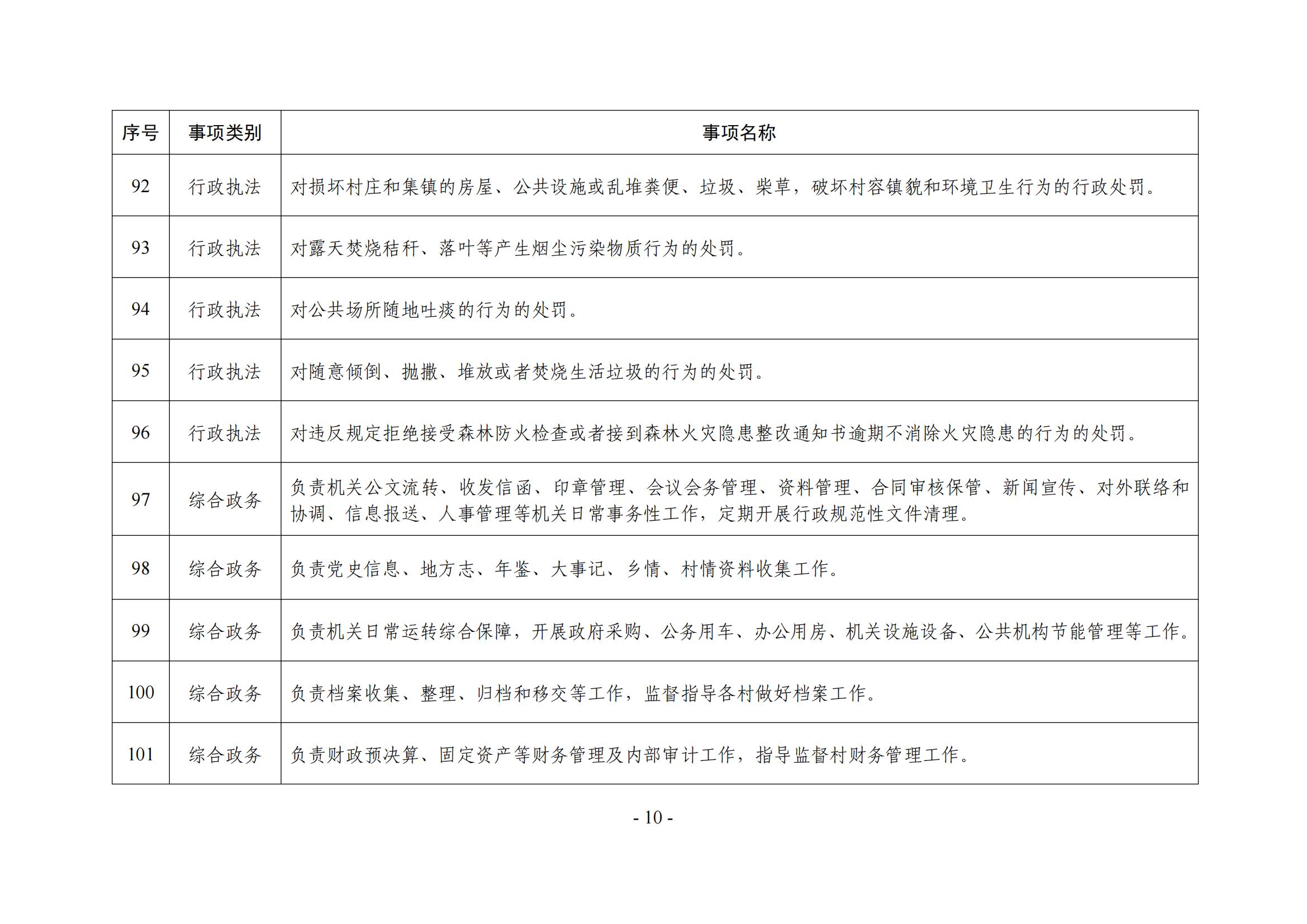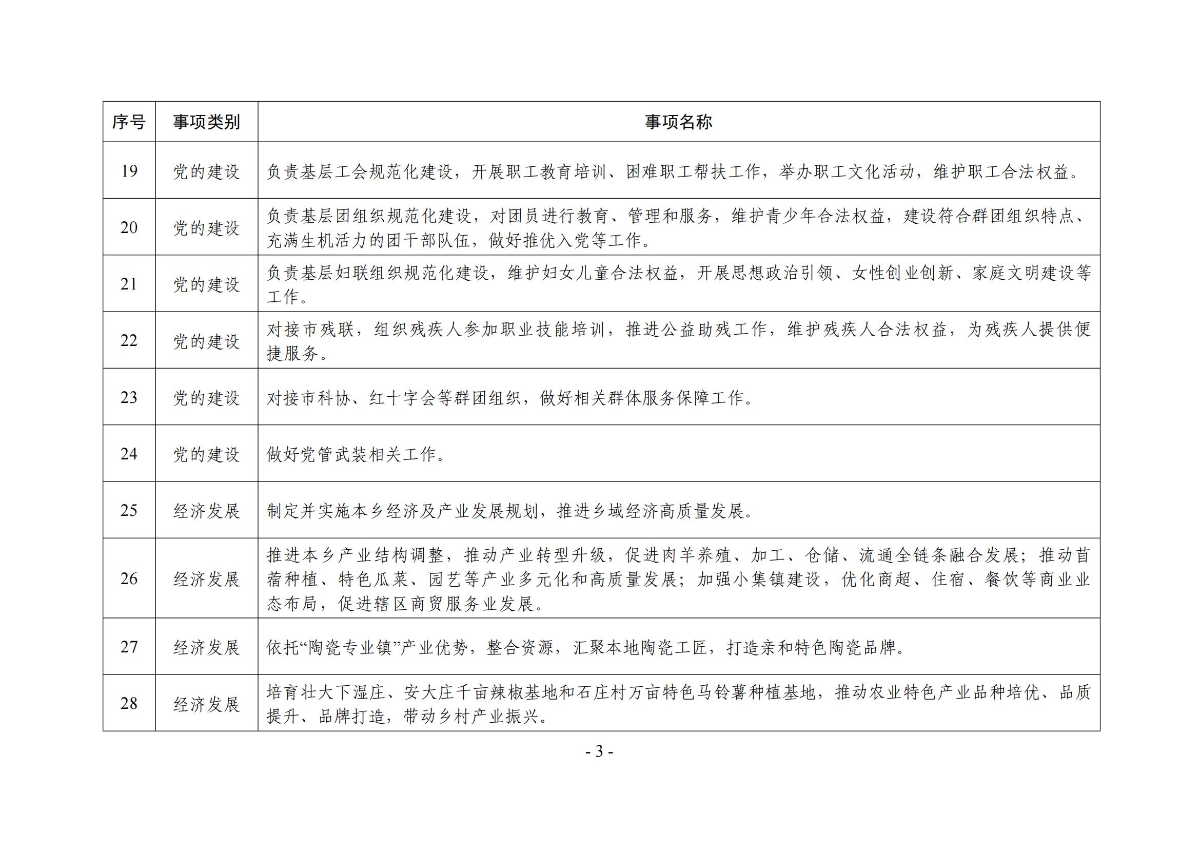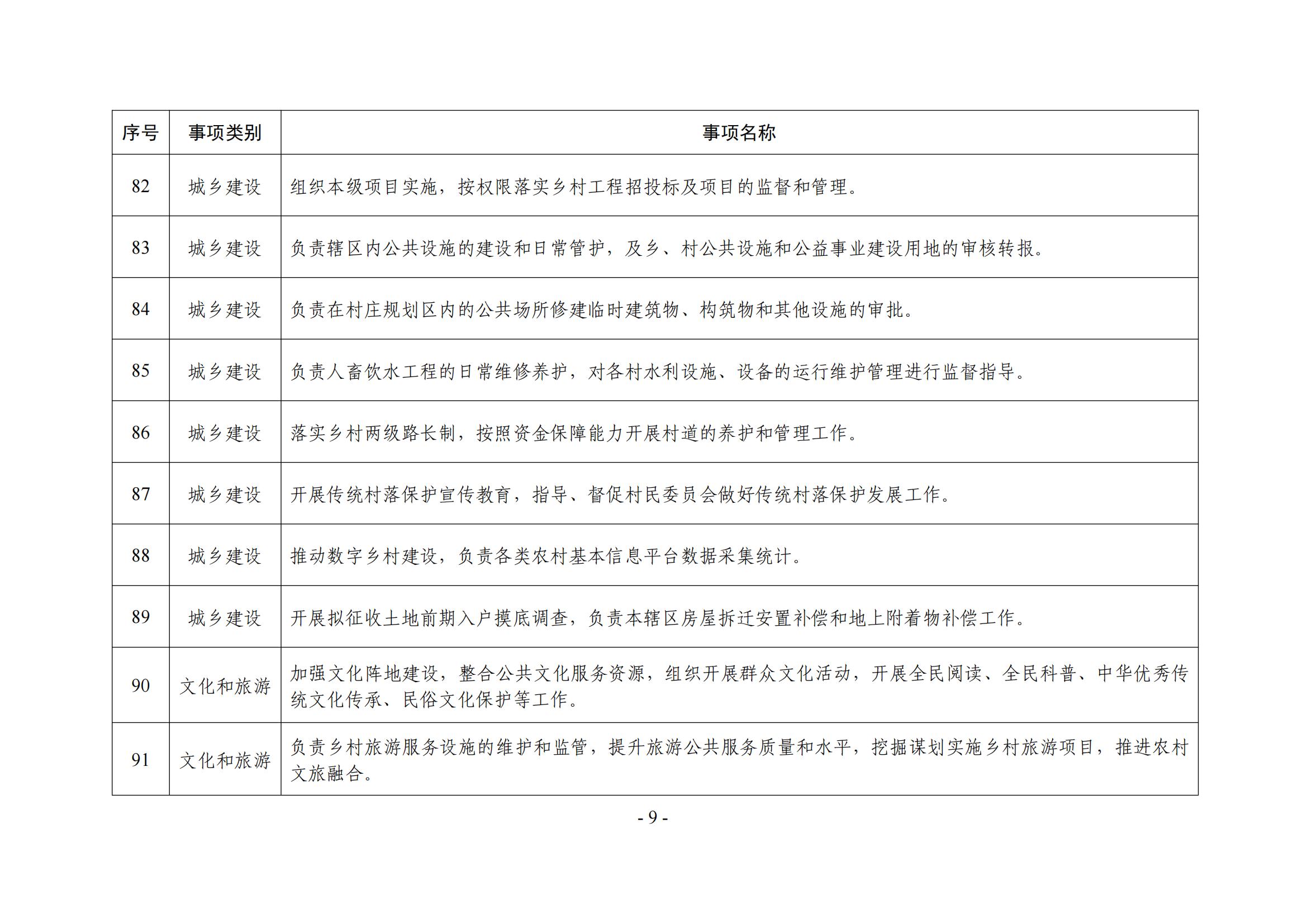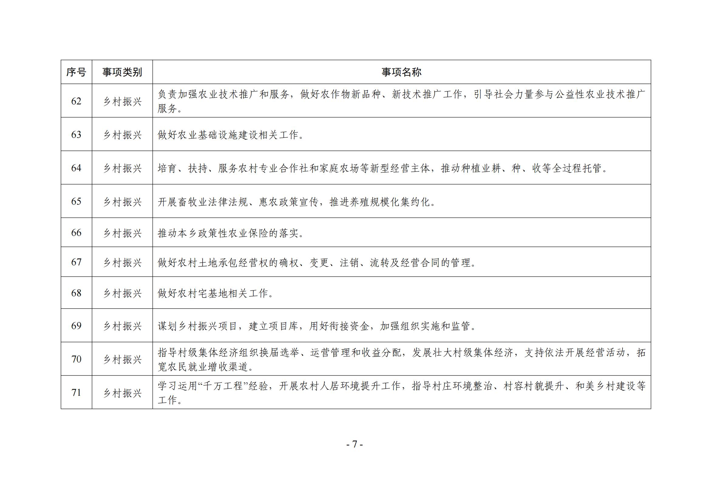 乡镇(街道)履职事项清单