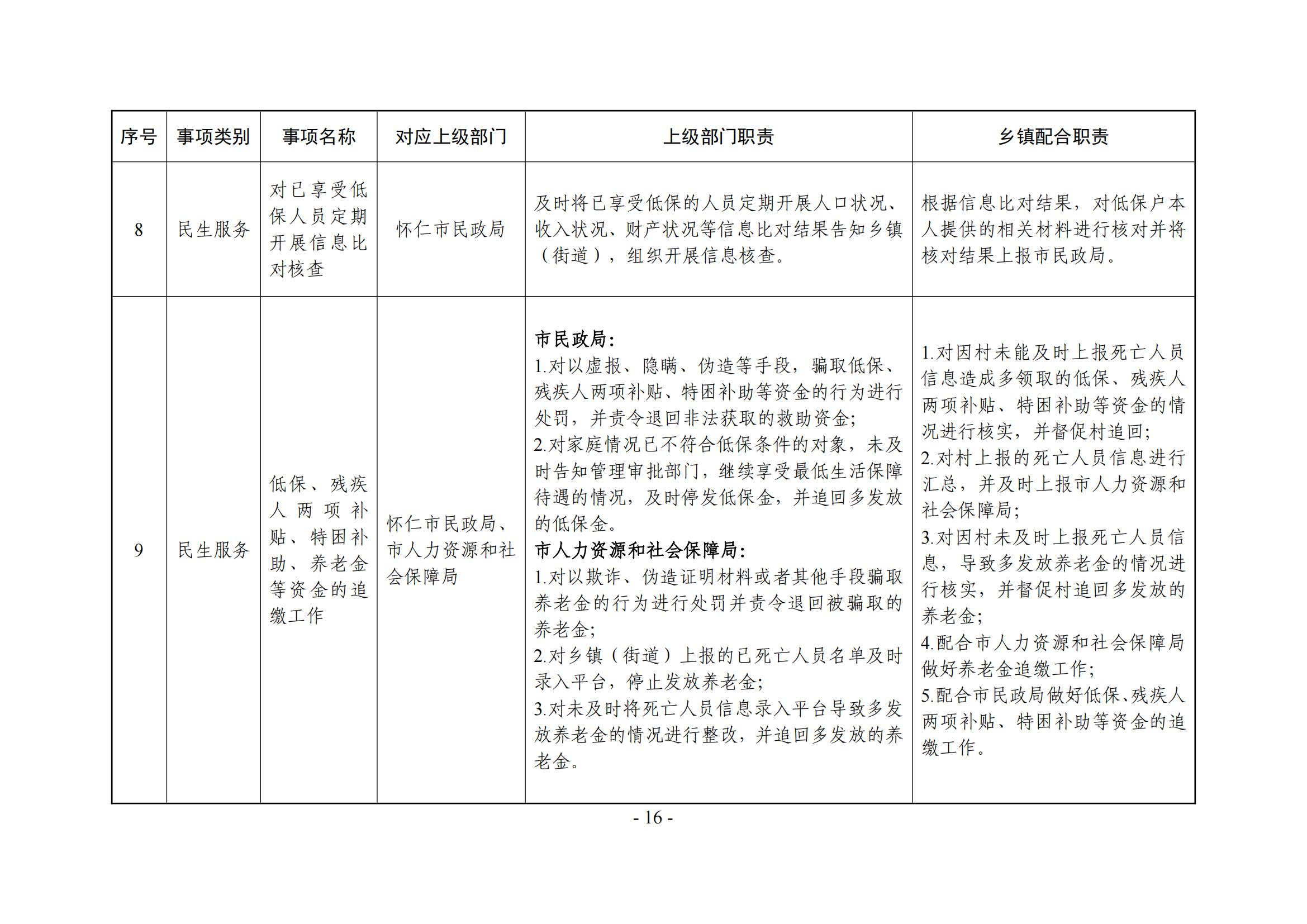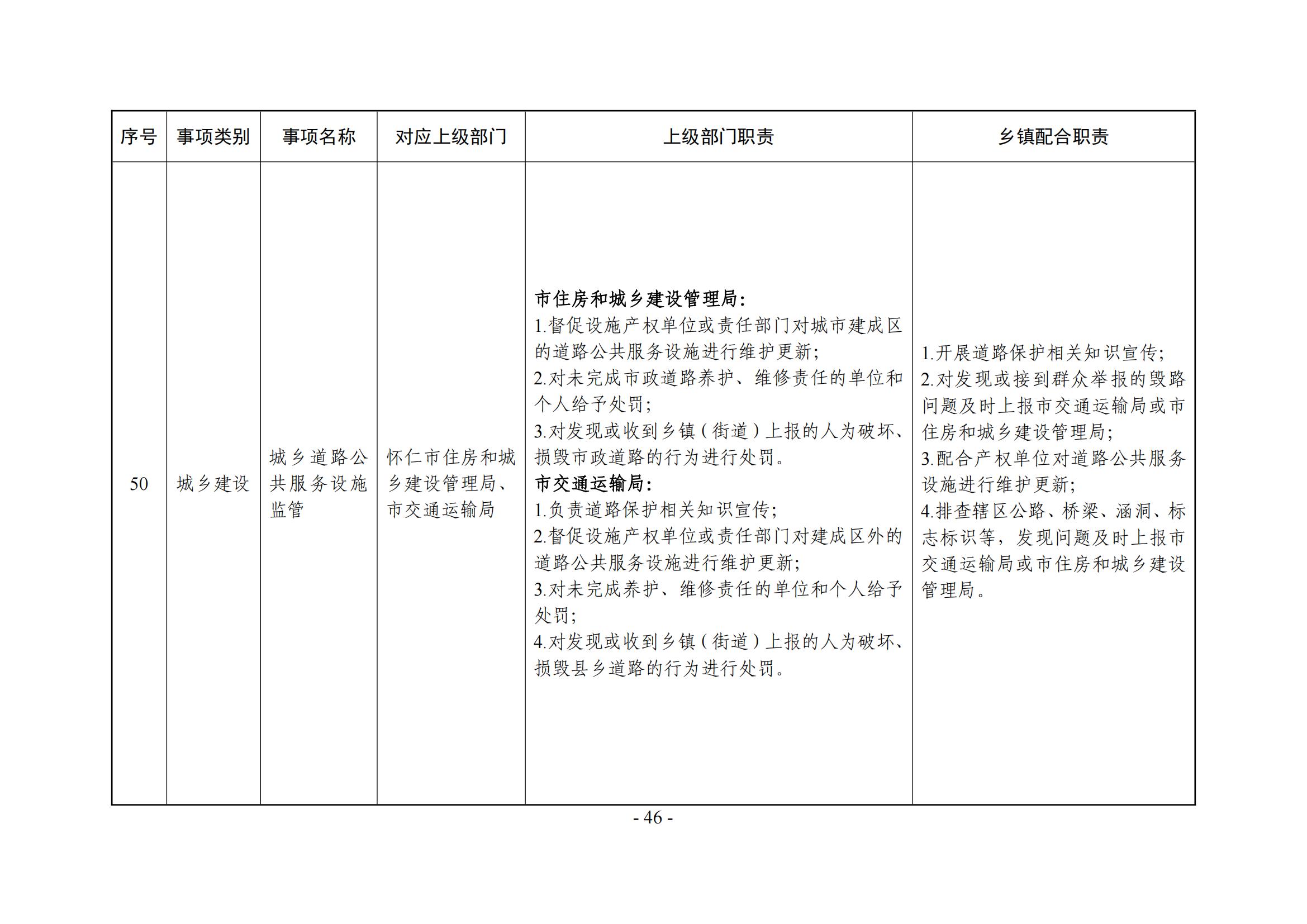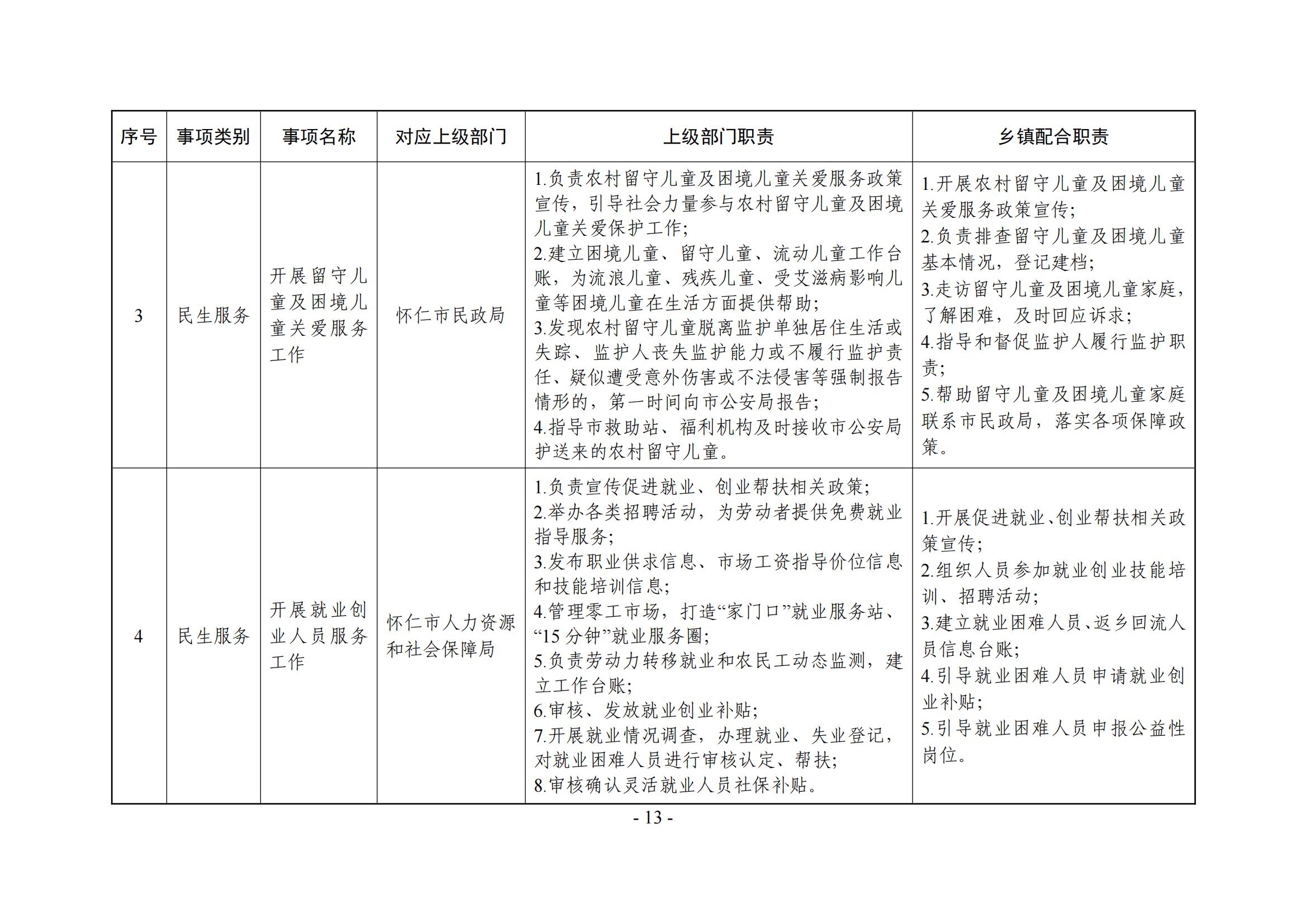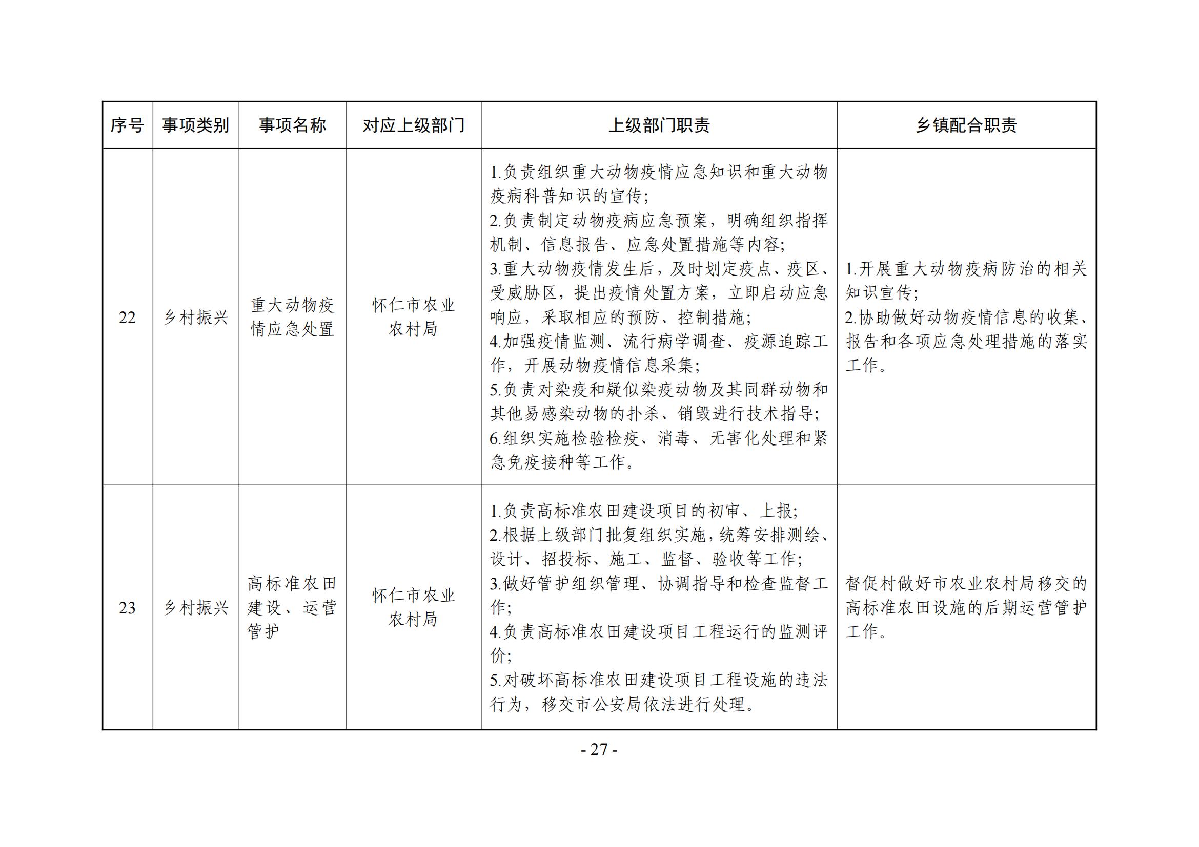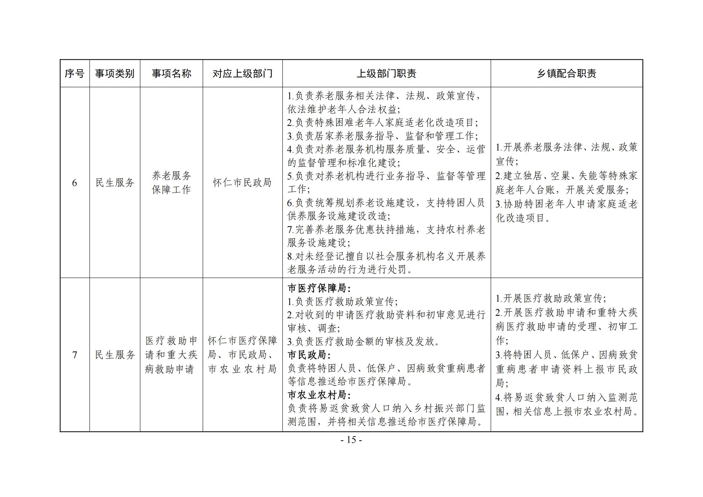 乡镇(街道)履职事项清单