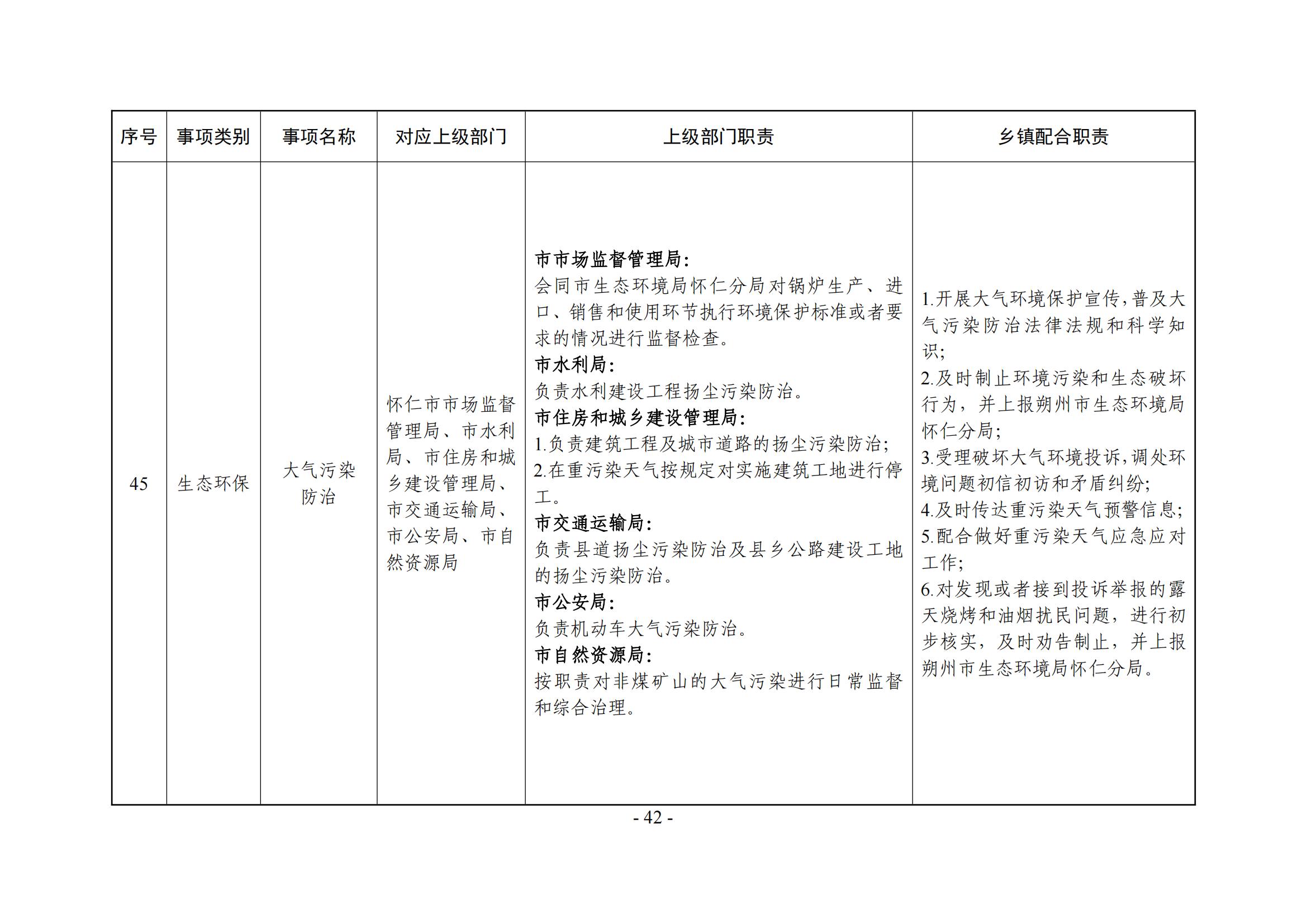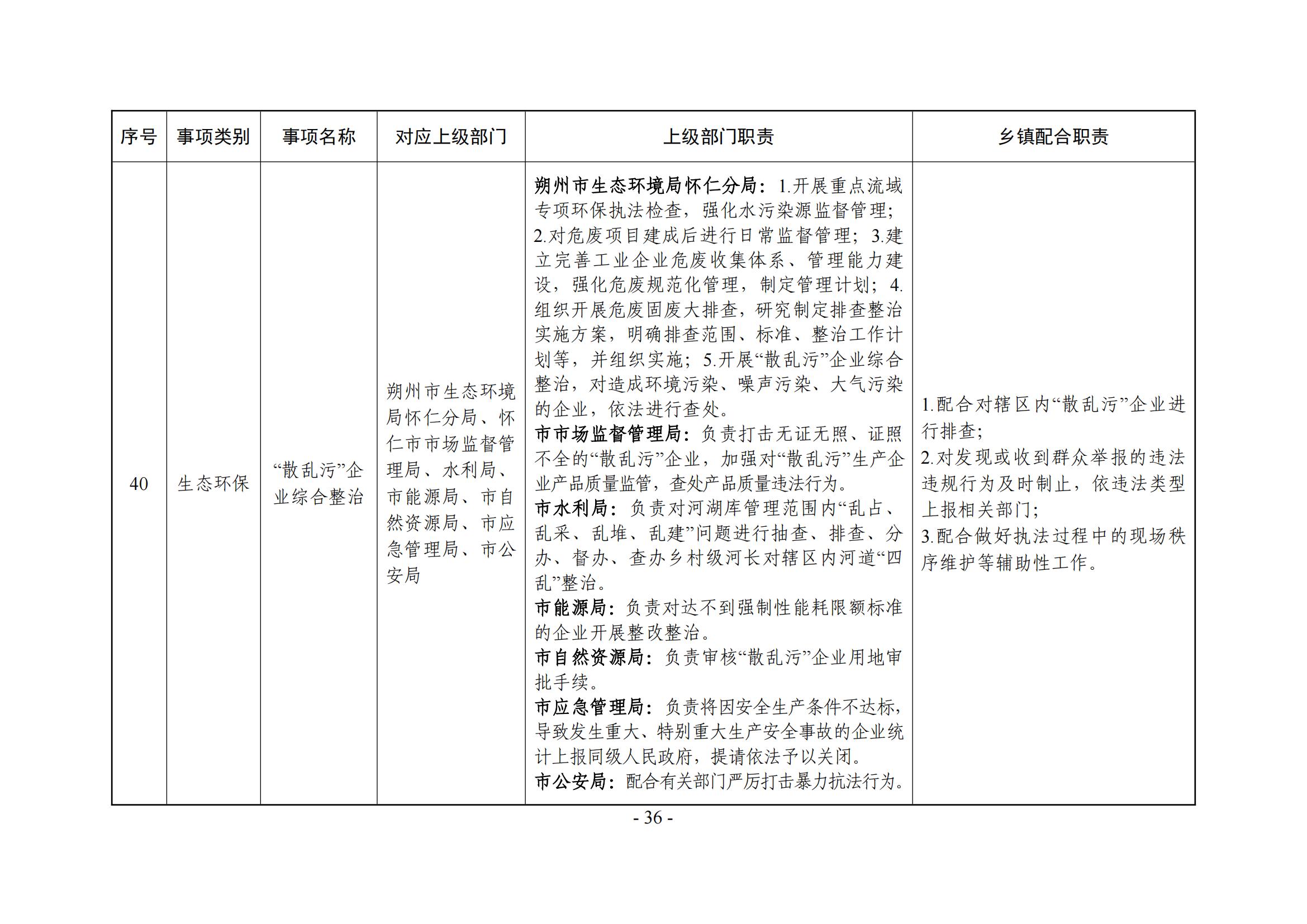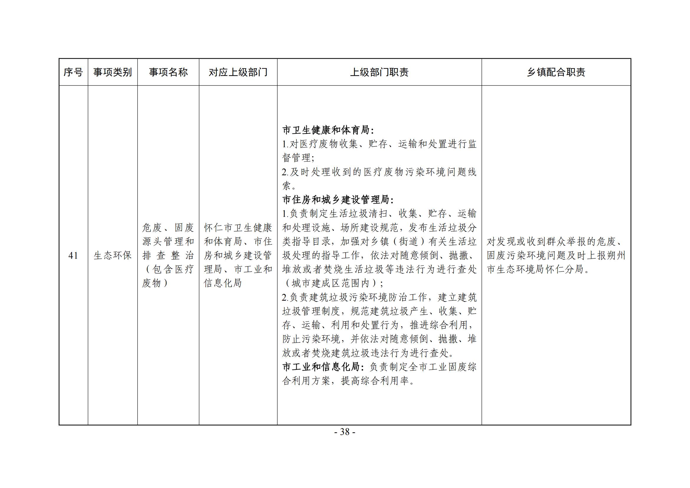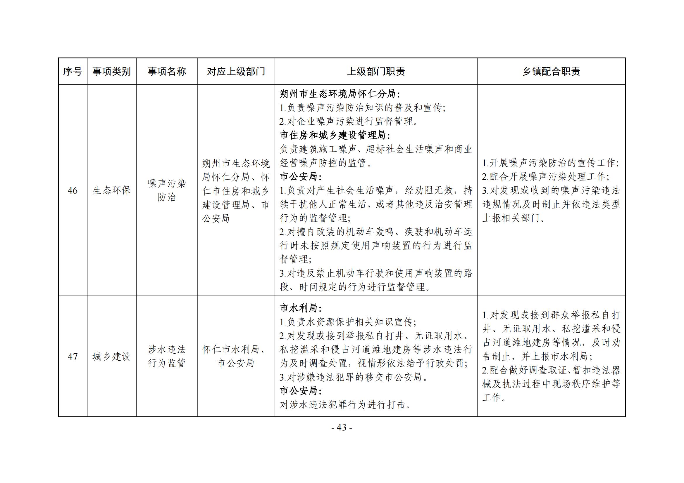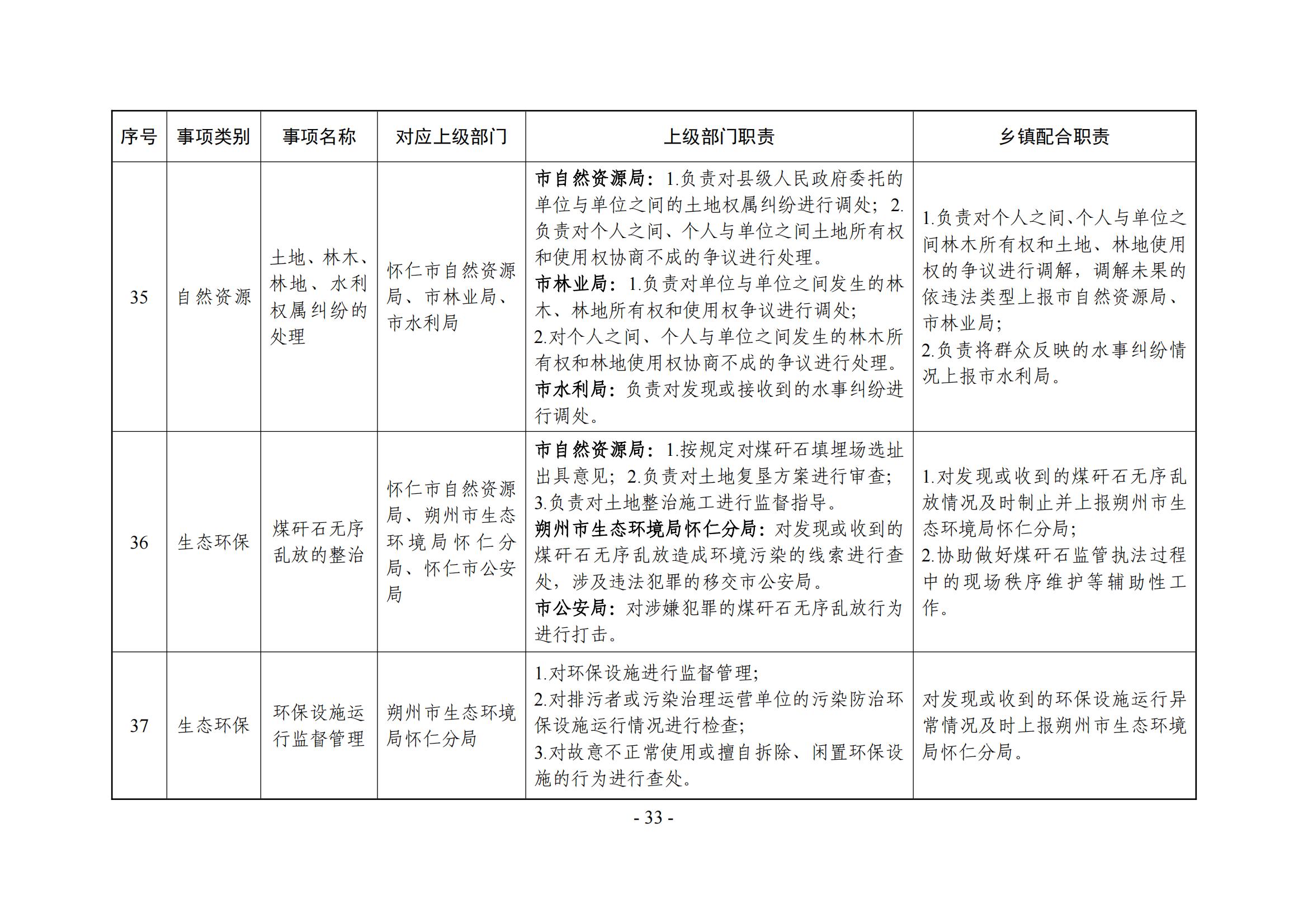 乡镇(街道)履职事项清单