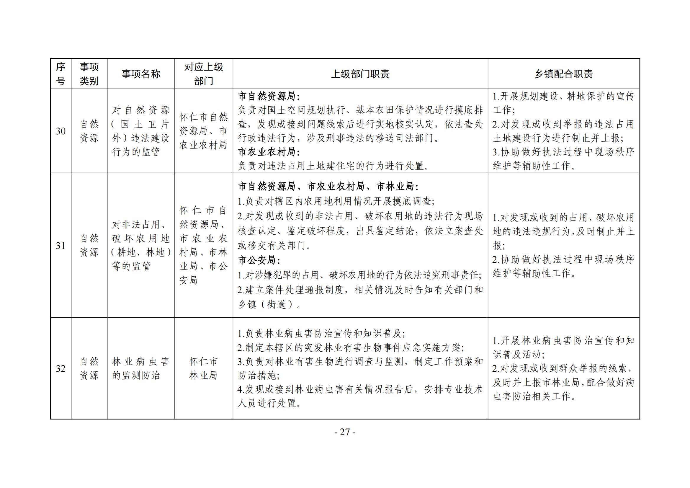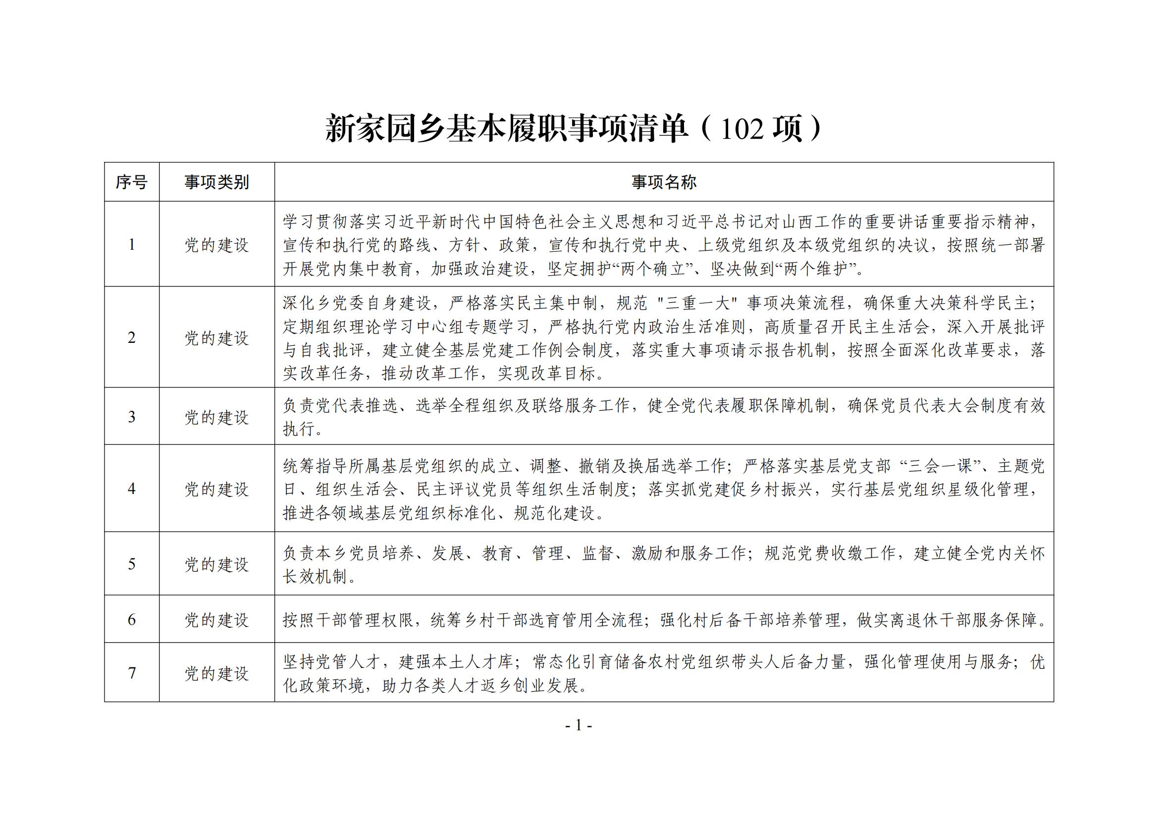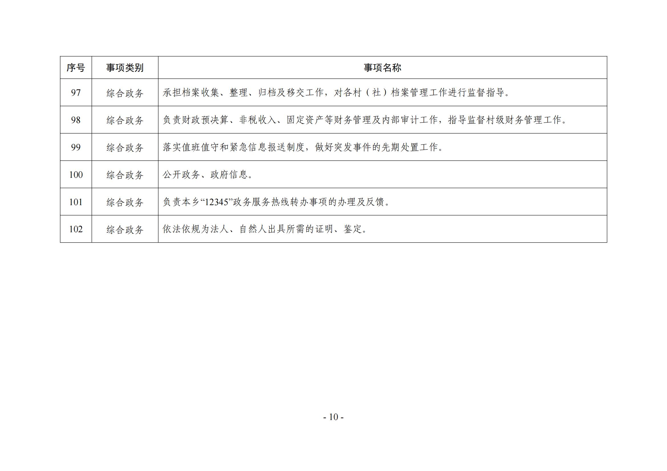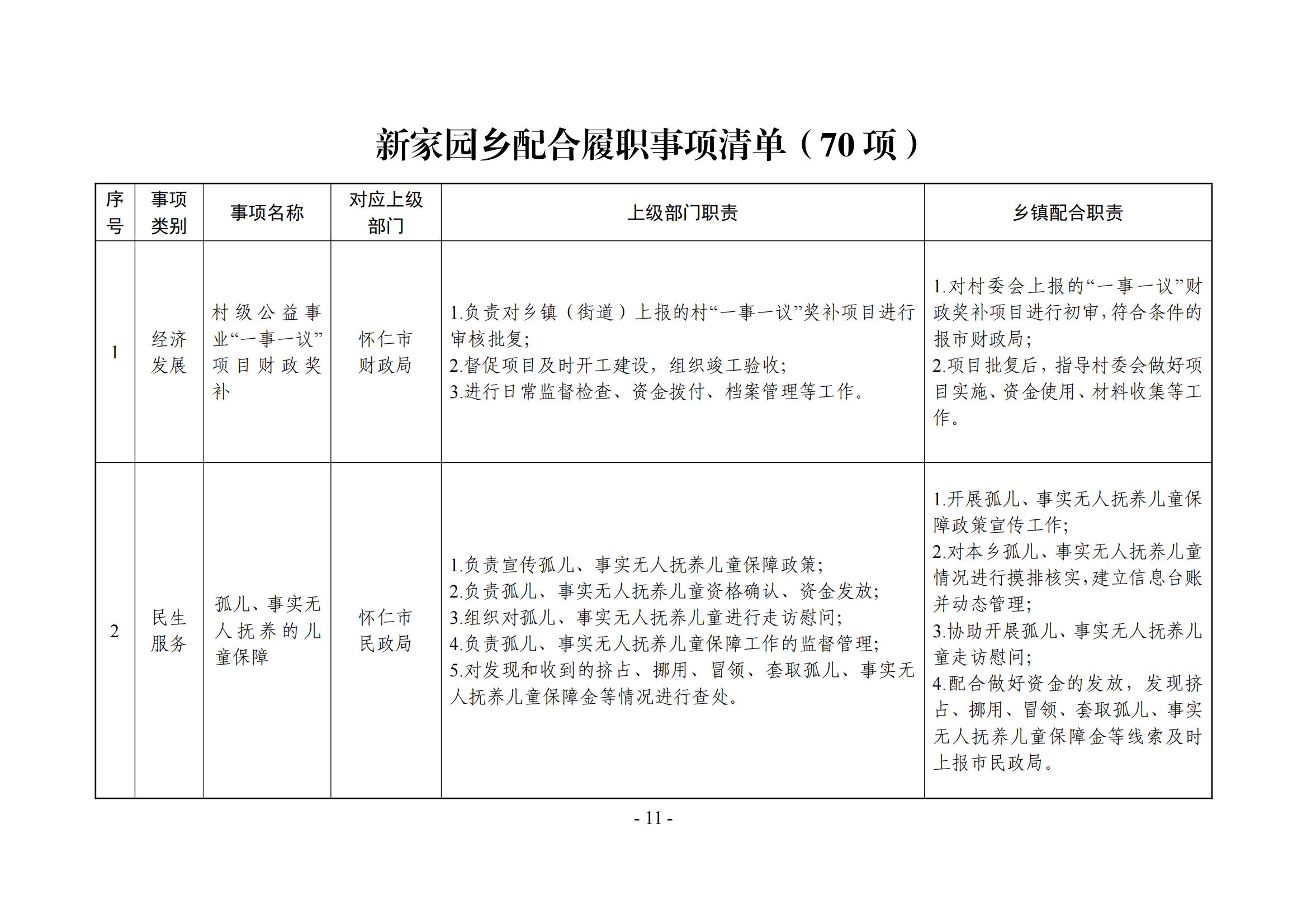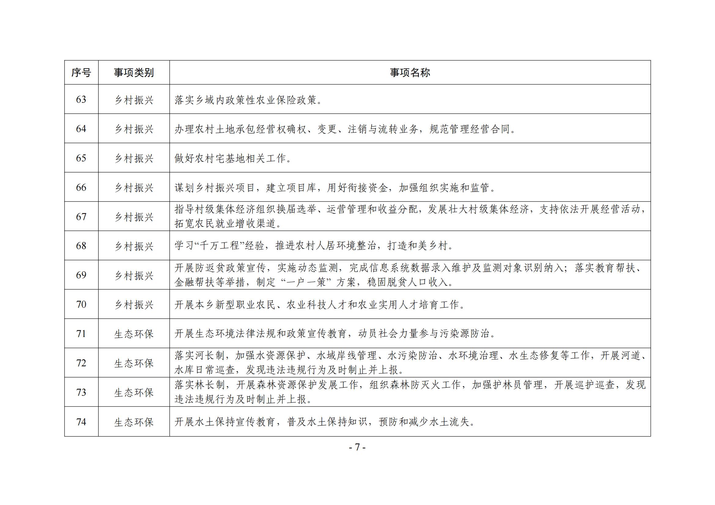 新家园乡履职事项清单