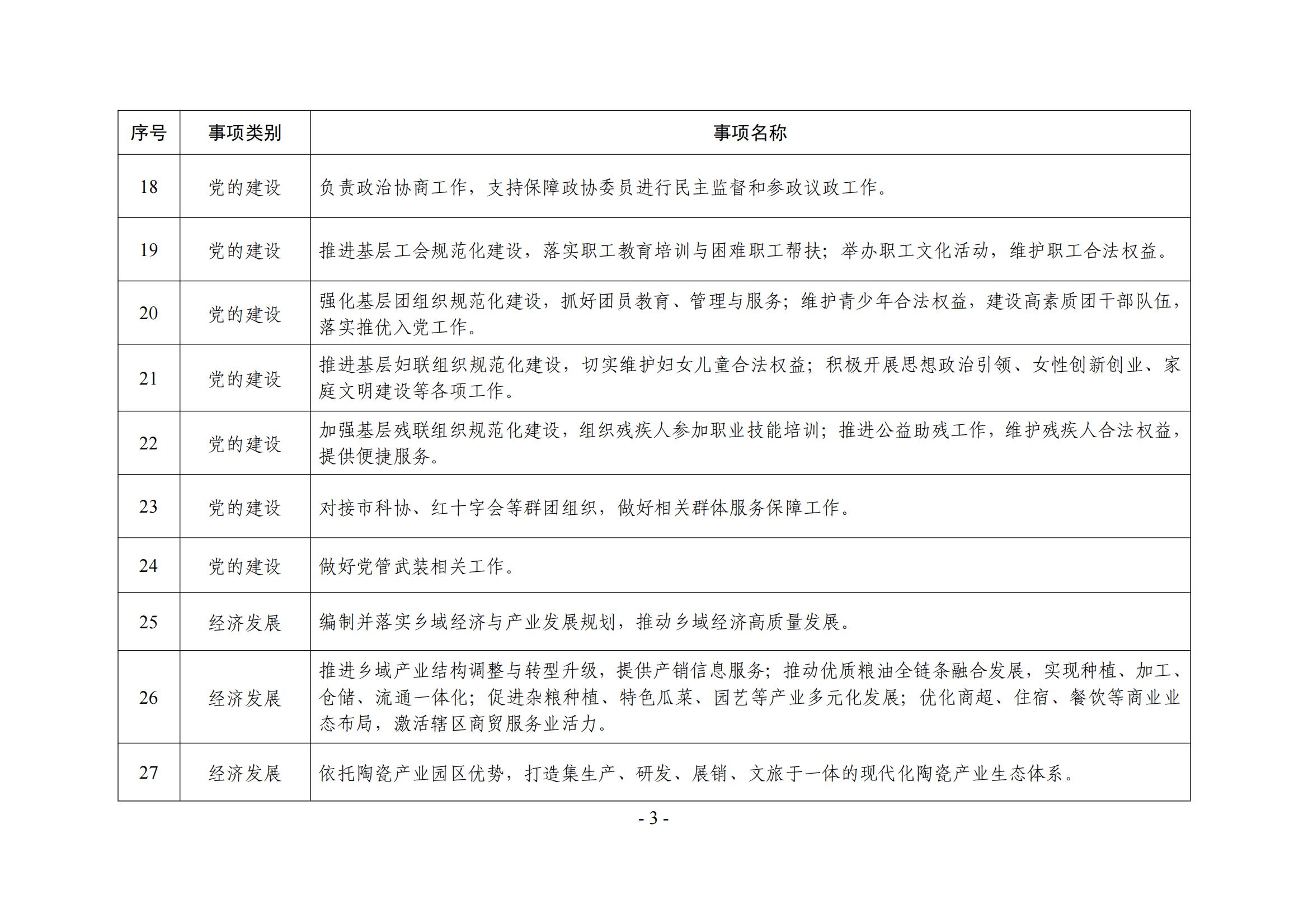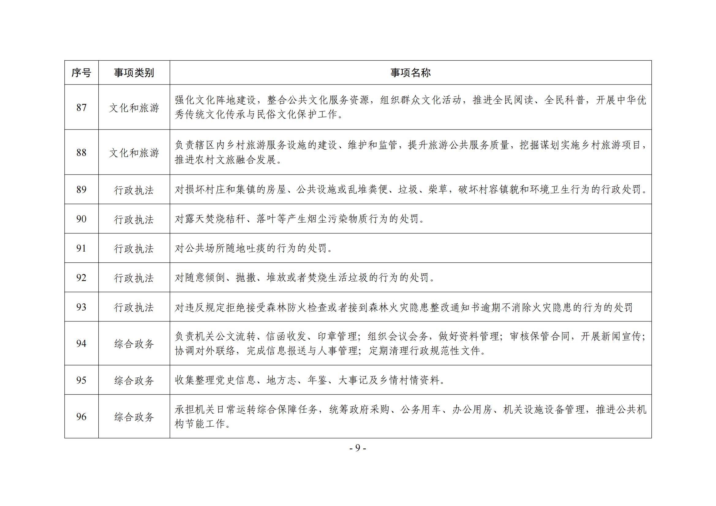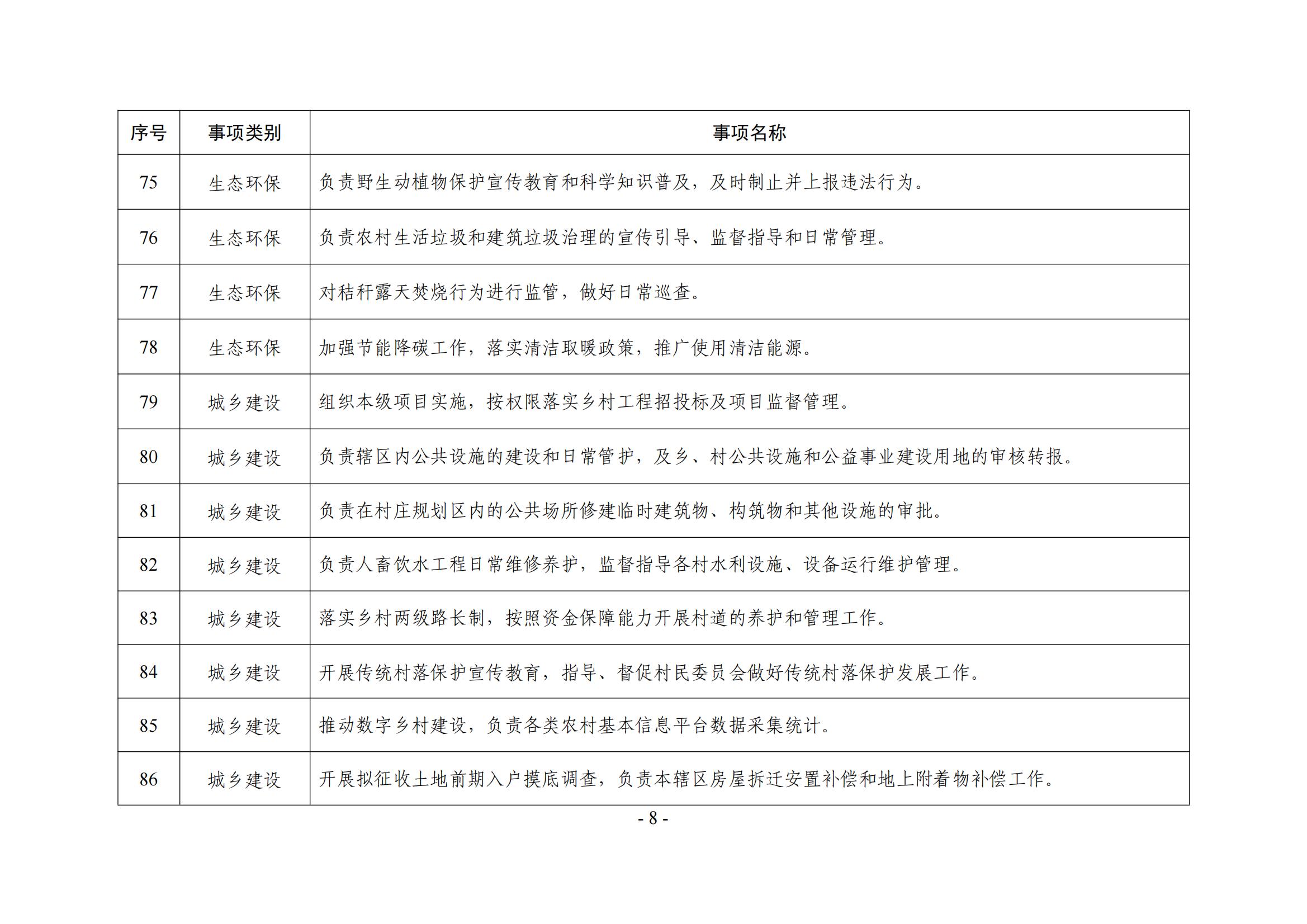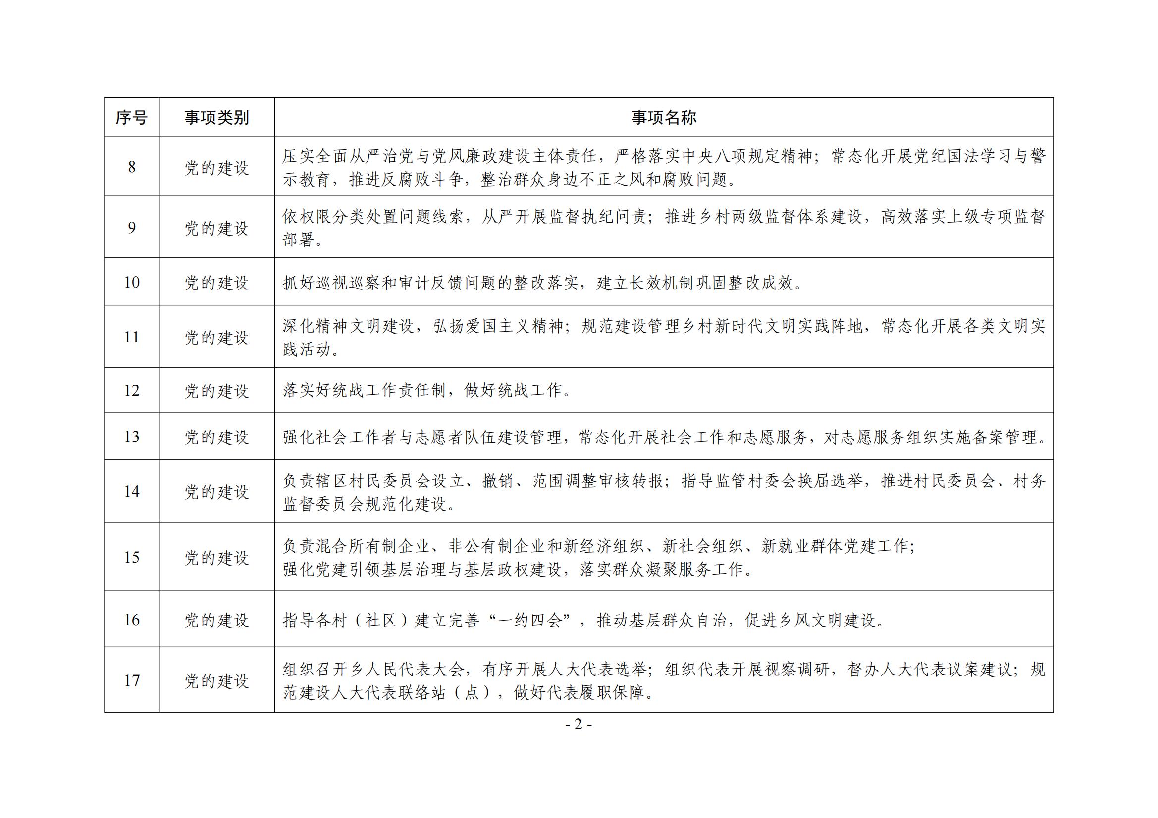 乡镇(街道)履职事项清单