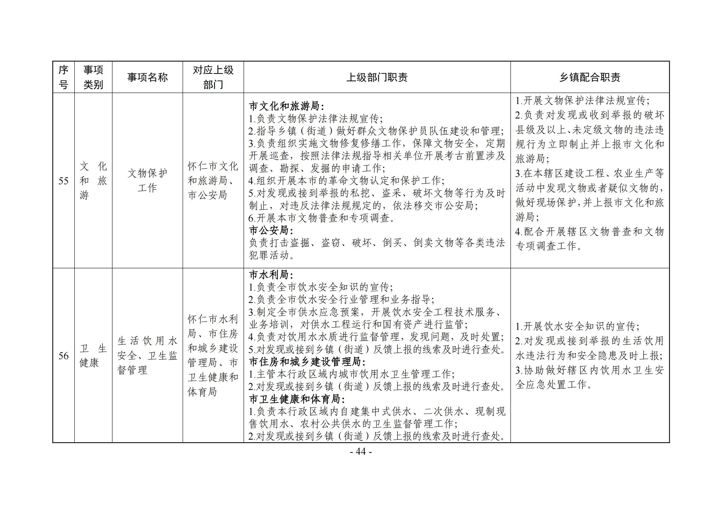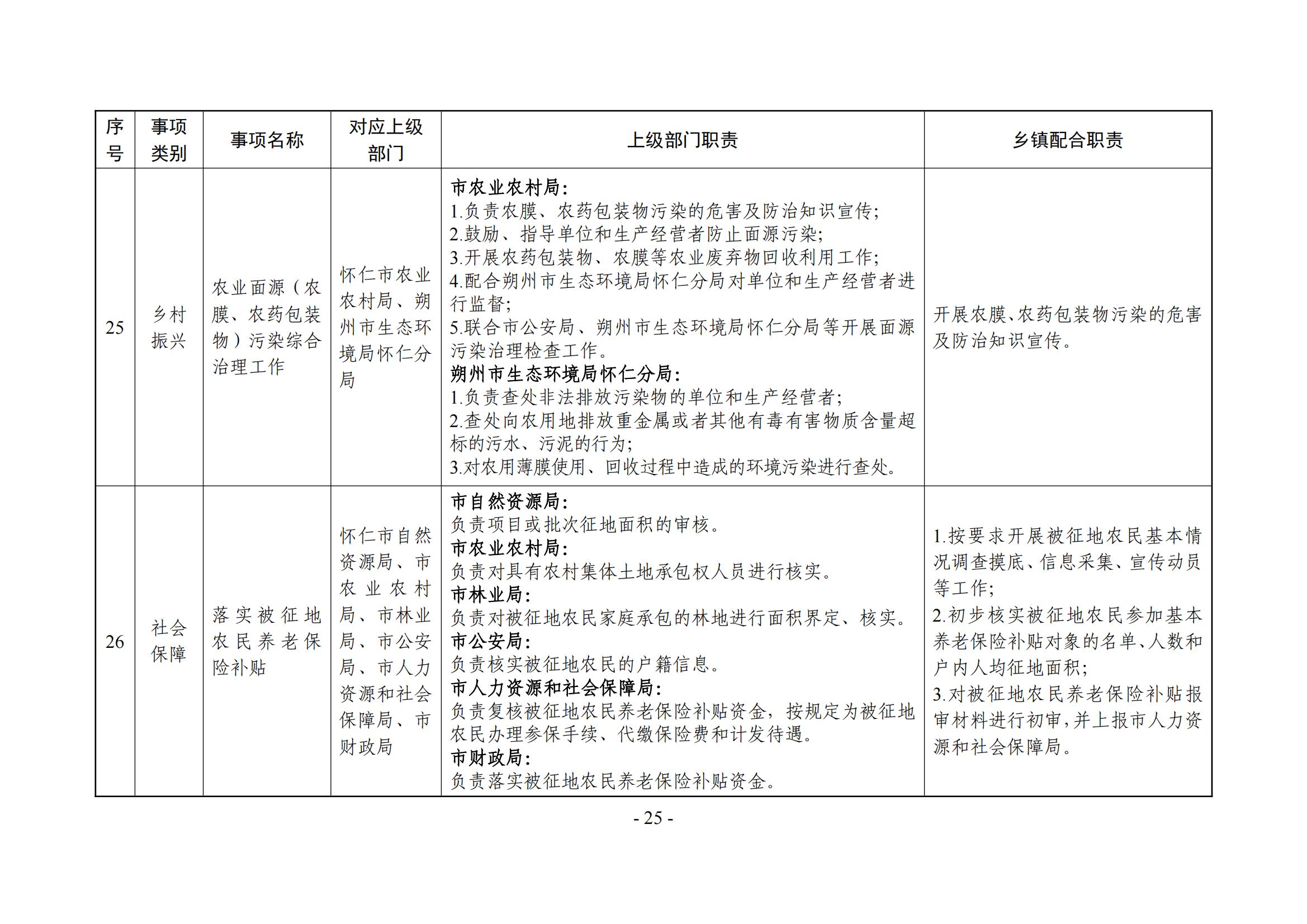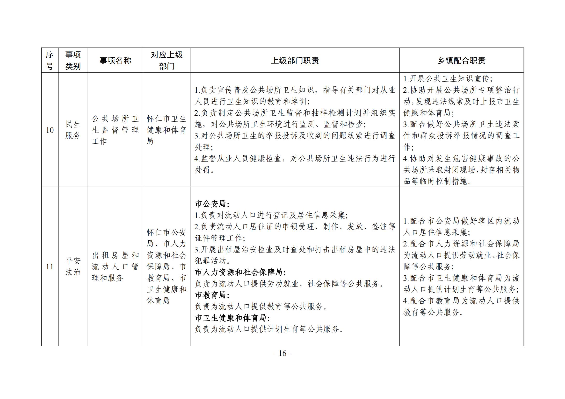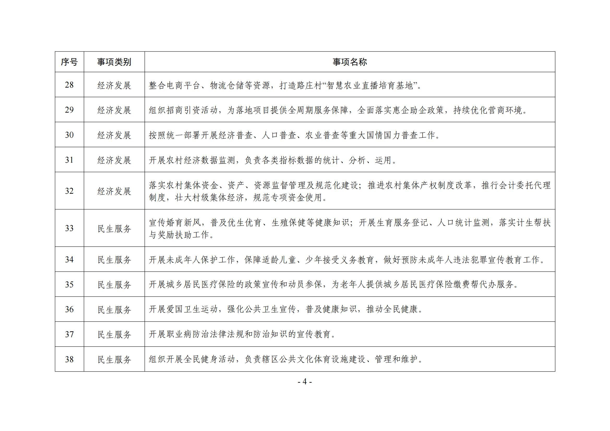 乡镇(街道)履职事项清单