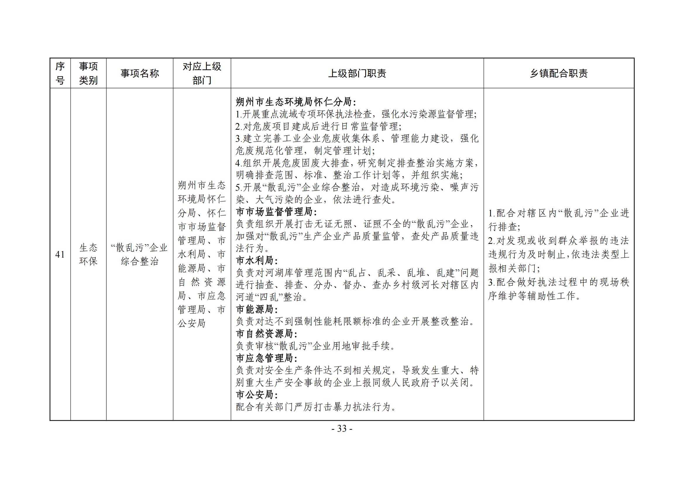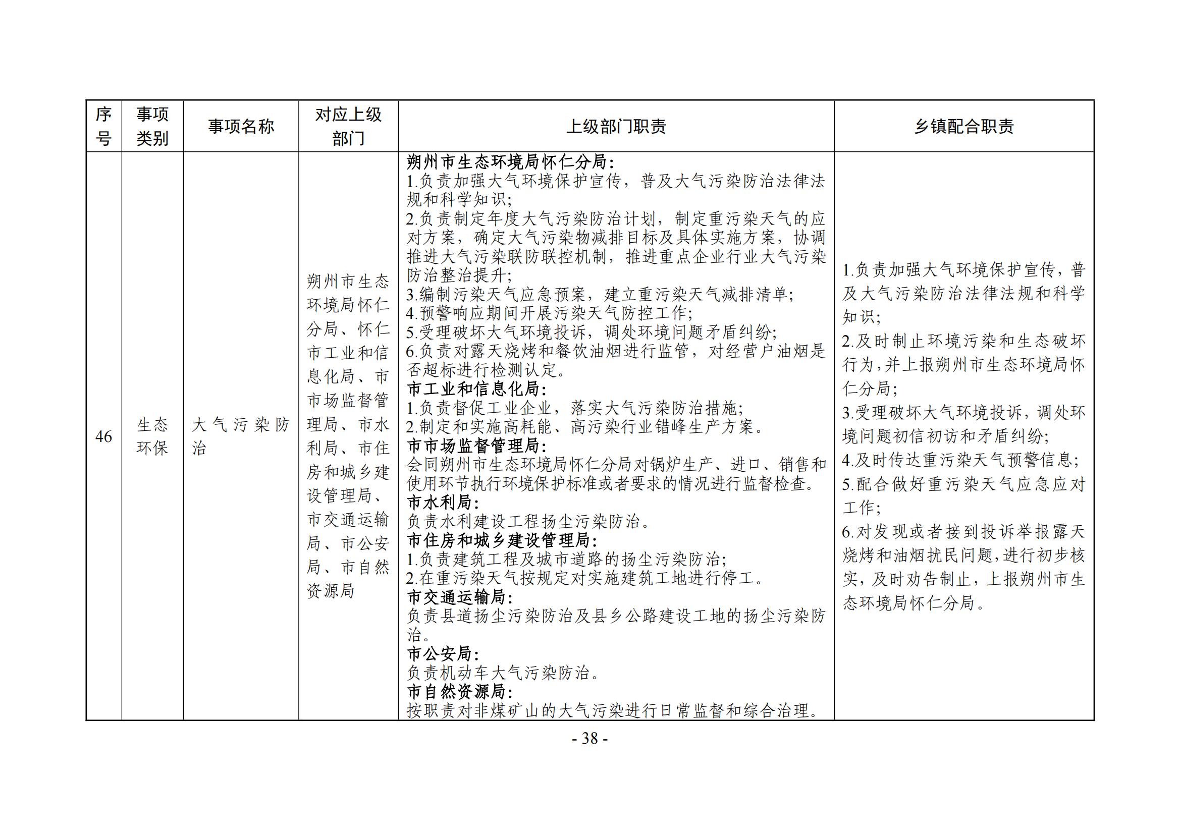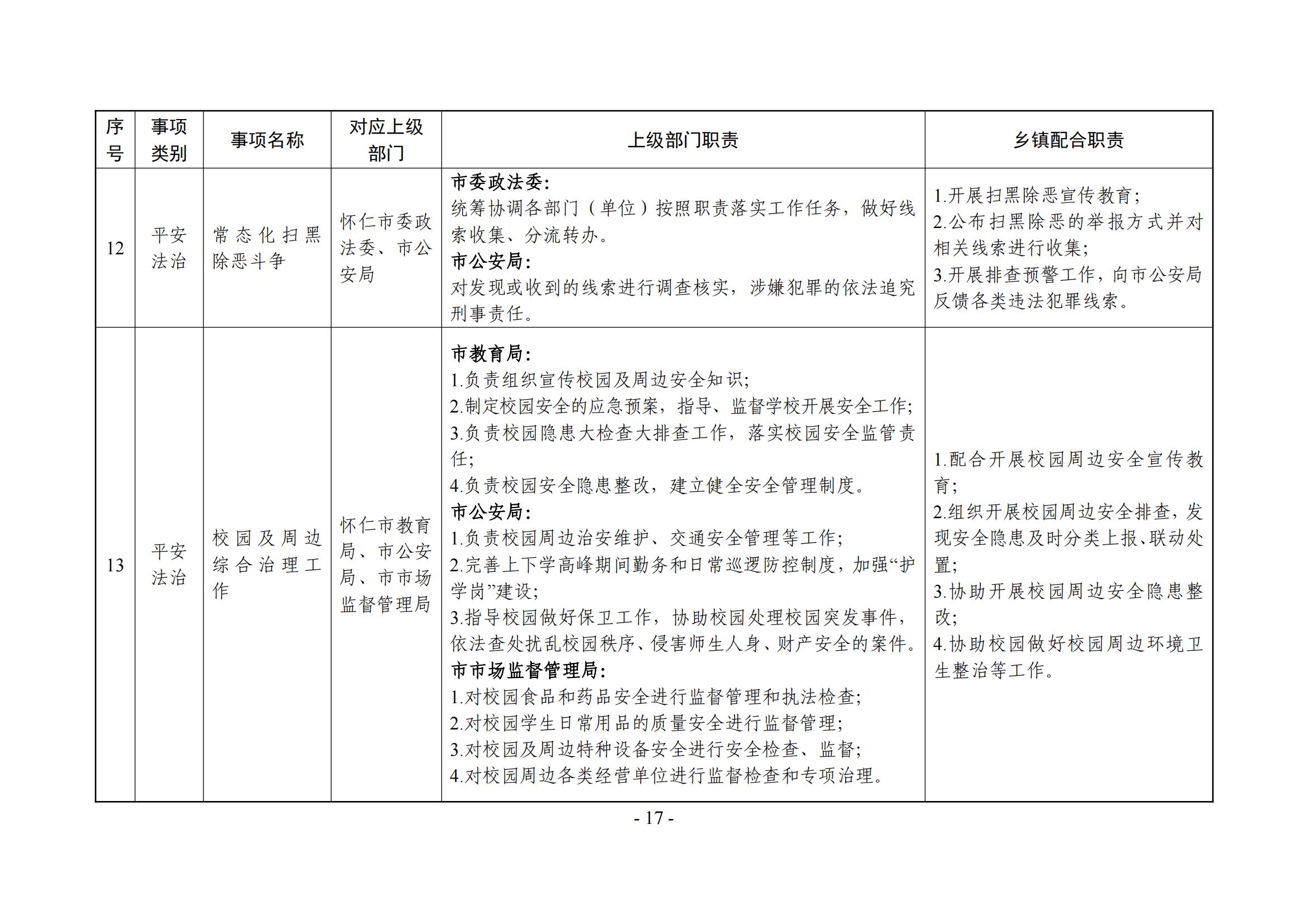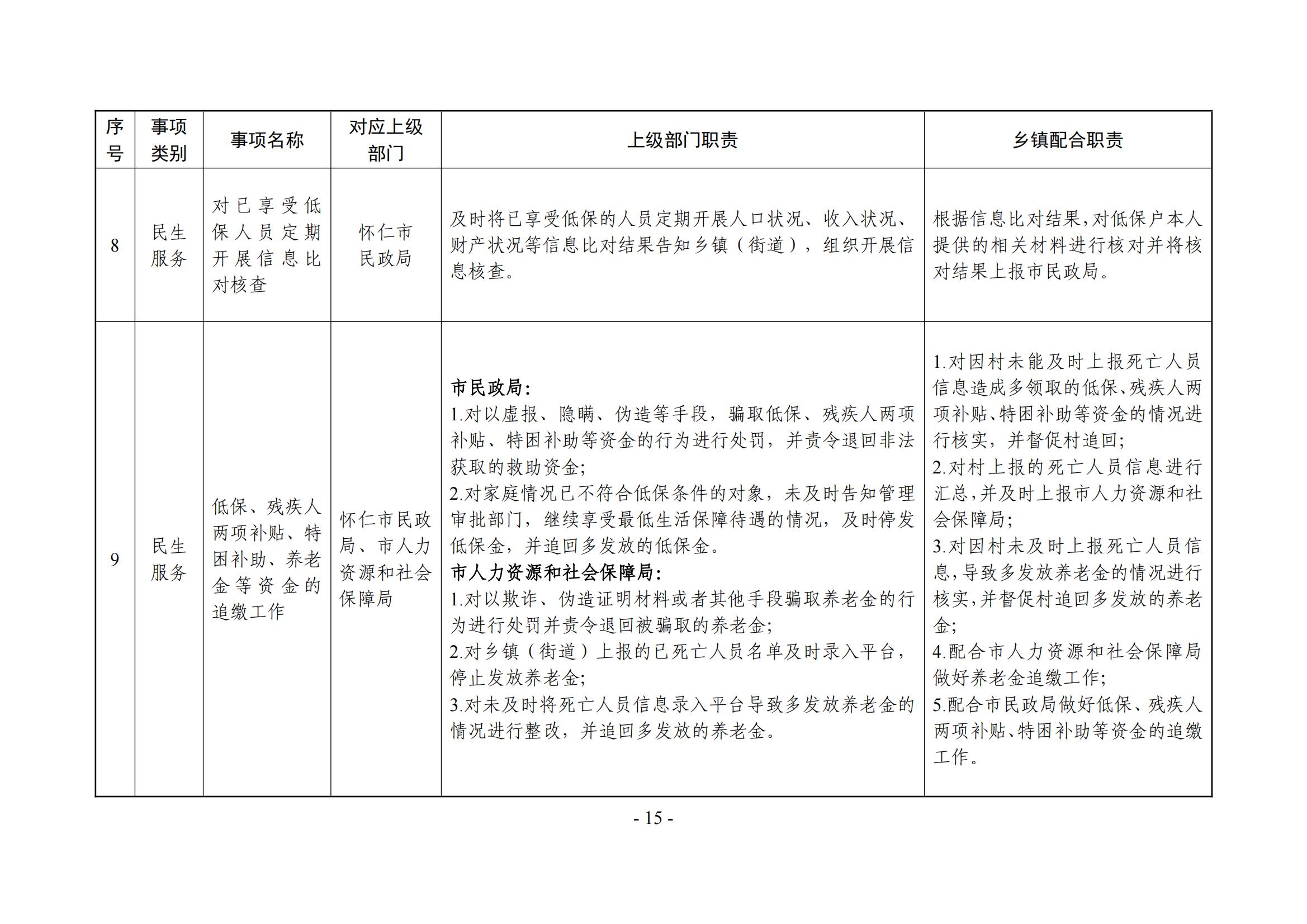 乡镇(街道)履职事项清单