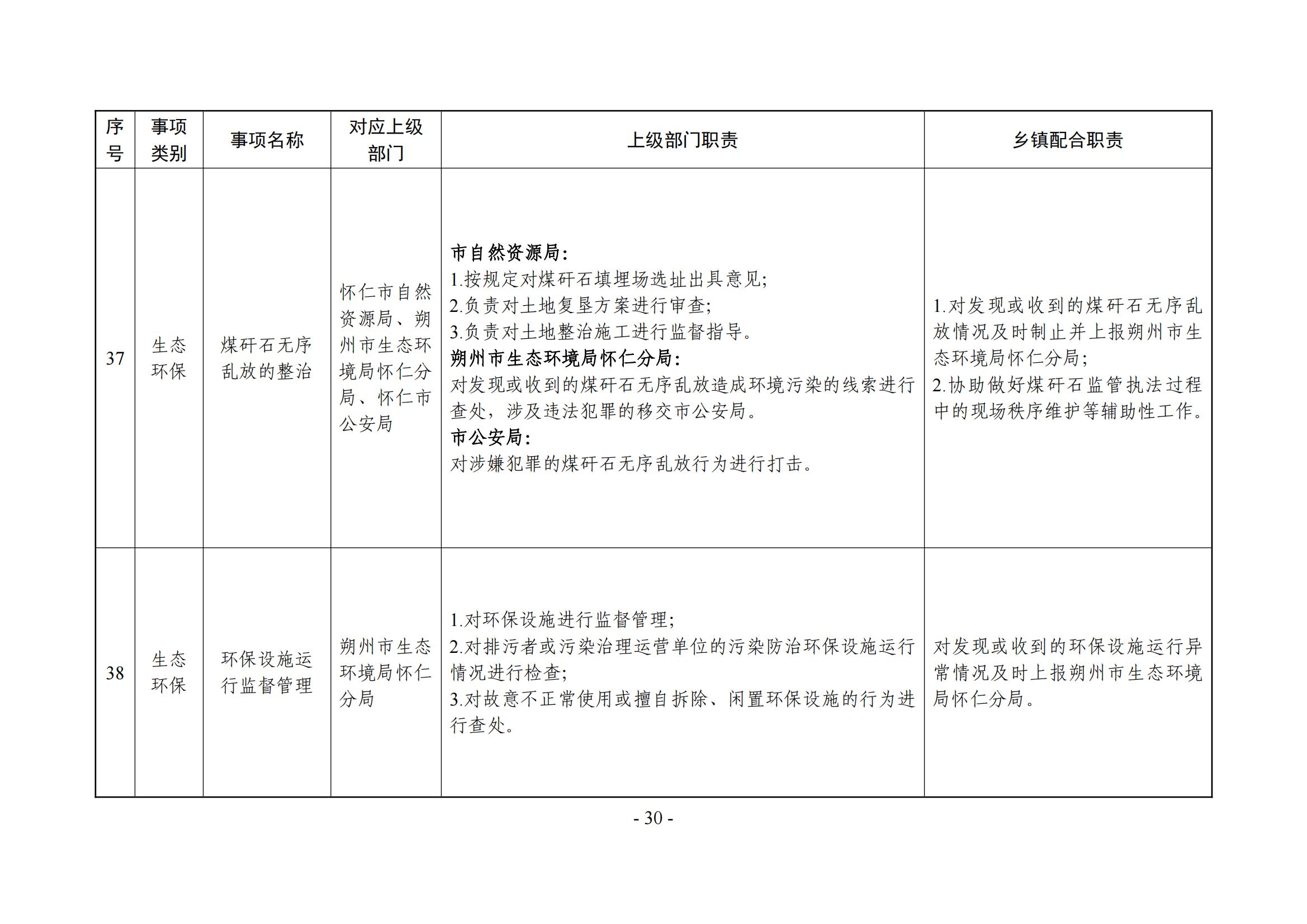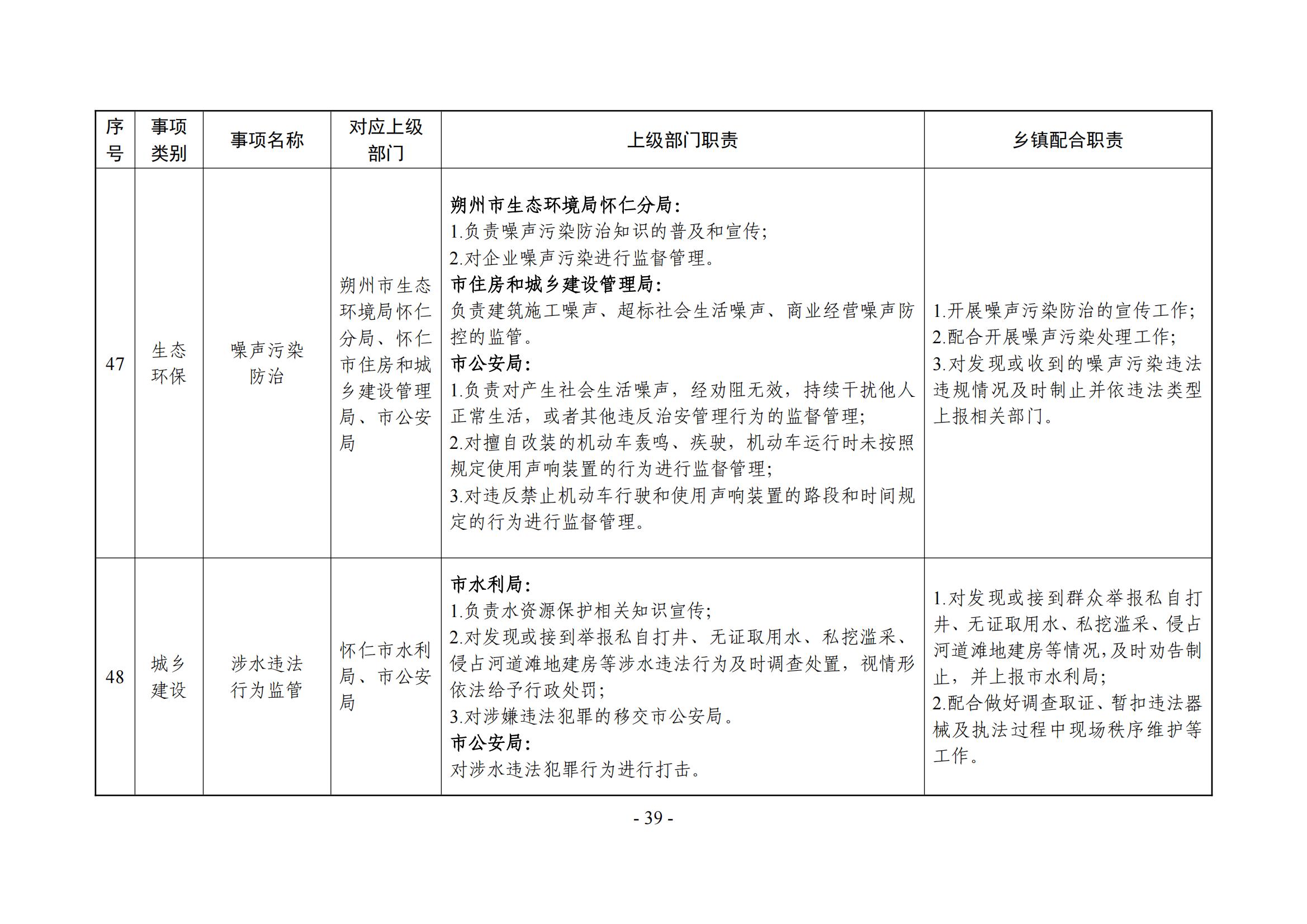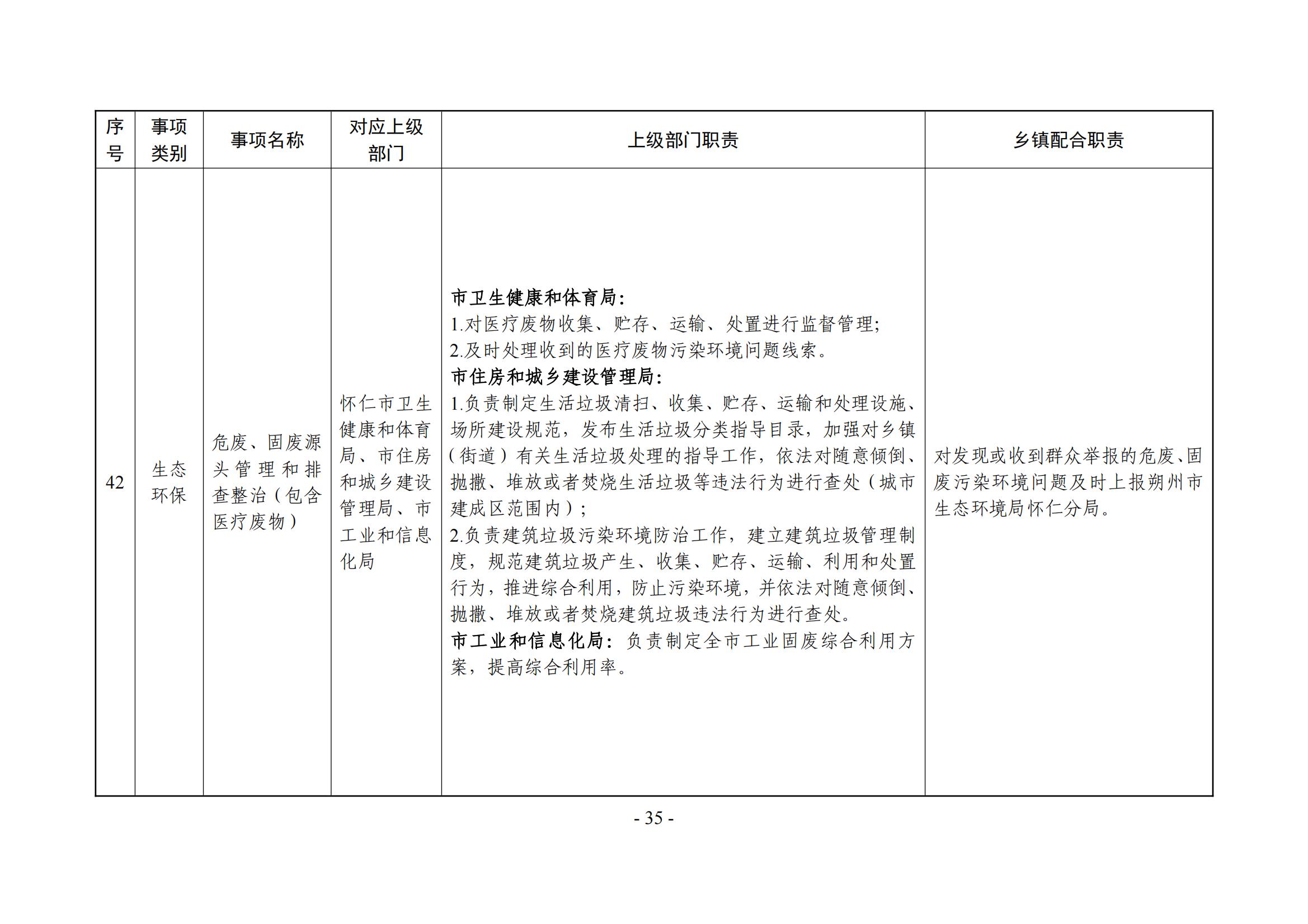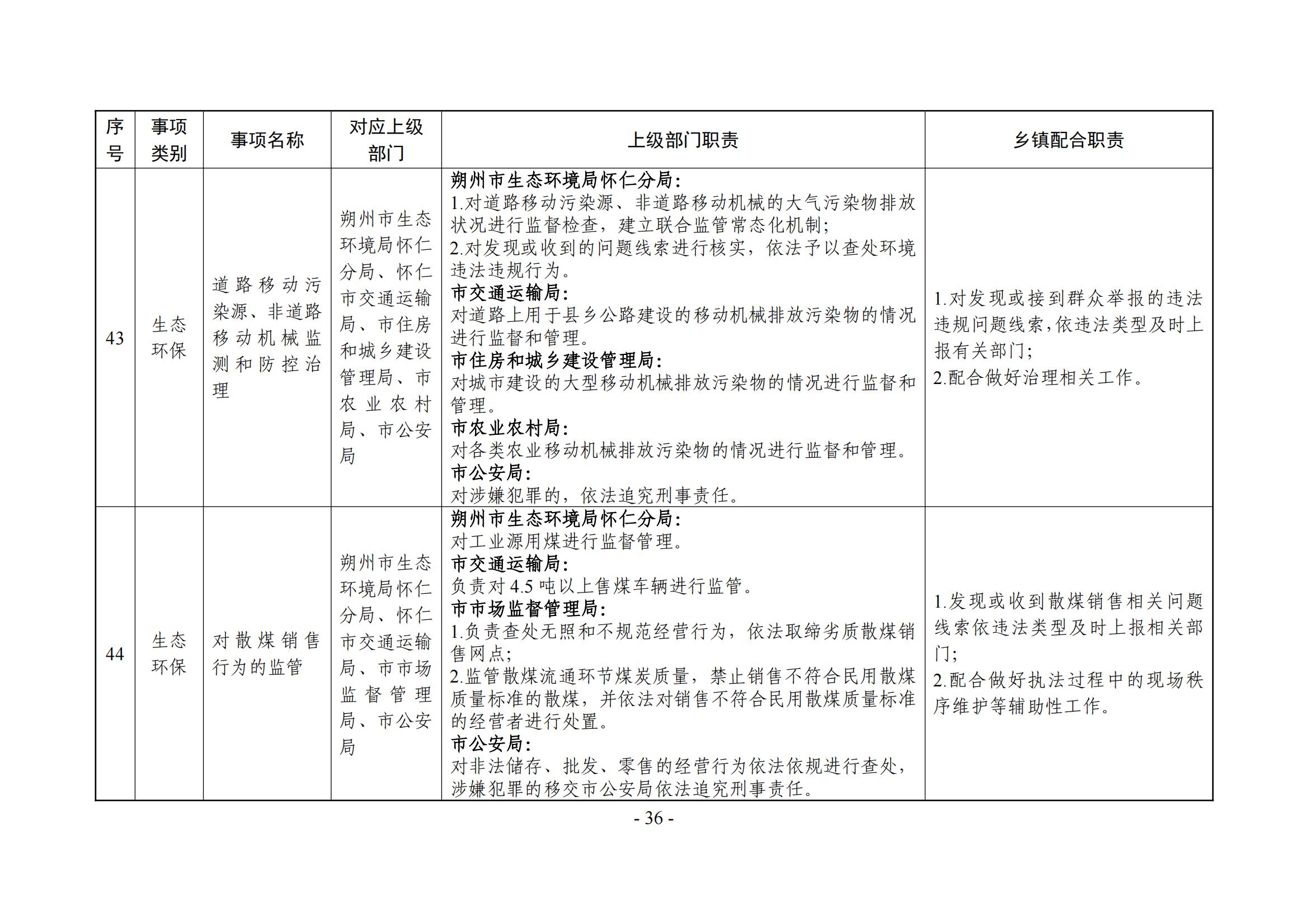 乡镇(街道)履职事项清单
