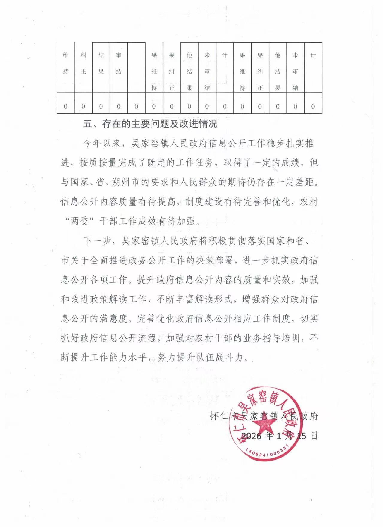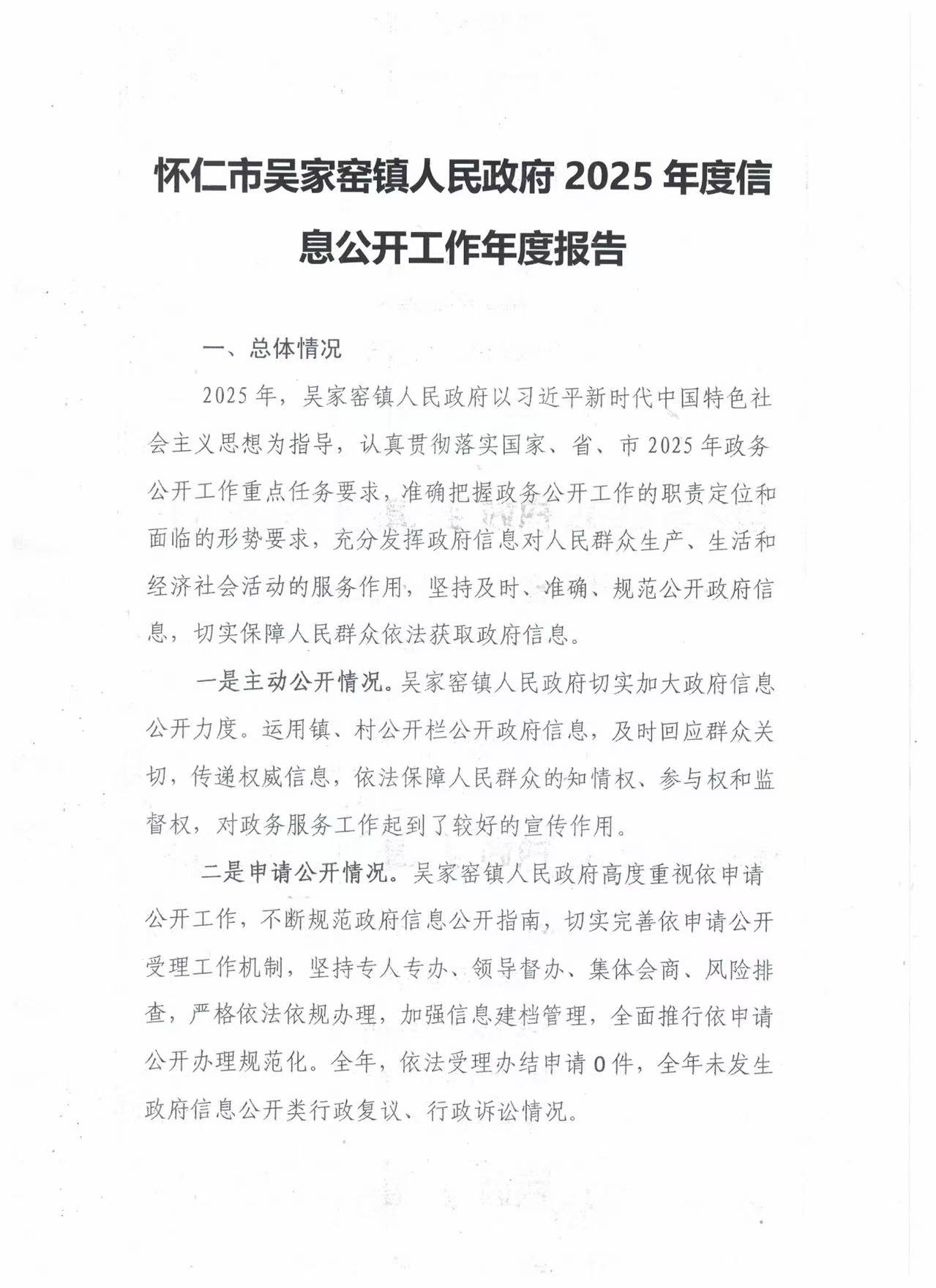 怀仁市吴家窑镇人民政府2025年度信息公开工作年度报告